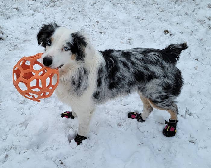 We hope you love our recommendations! While every product is independently chosen by our editors, BuzzFeed and our publishing partners may collect a share of sales or other compensation from the links on this page. You can read more about how our affiliate partnerships work in our Editorial Standards & Ethics Guide. Winter weather means your dog's dogs will start barking once they touch the cold, icy, salt-stained ground, so you'd better protect those precious paws. Temps are low, snow is falling, ice is freezing, and even the thought of taking your dog out for a walk makes you want to hide under the covers. While there are plenty of indoor toys for entertaining your pup when it's cold, you will inevitably have to take them out to use the bathroom. But rock salt and ice melt that sidewalks are typically caked in during cold weather can damage your pooch's paws. Luckily, dog booties exist for protecting delicate paw skin from harsh chemicals, uncomfortable surfaces, and more. So before you get to snuggling up with your best bud and a heated blanket, check out these dog boots that'll keep those precious toe beans safe, warm, and smelling perfectly like Fritos. If this is your first pair of dog boots, it's OK for both you and your dog to be a little weirded out by them. This particular pair is made from waterproof, four-sided stretch fabric and leather, which is soft to those sensitive paws, to help your pooch adjust to the new sensation of, well, wearing shoes. And don't worry if pink isn't your preferred color, there are tons of cute combos. Promising review: "We ordered these hoping they'll help our dog. Whenever it snows and there is salt on the ground, it really hurts her feet. These are actually waterproof! It did take a few times of her wearing them to get comfortable walking with them. There are two straps of Velcro that hold on well to their legs. I did not have any problems putting them on, as they open pretty wide to slip her feet into. They did not fall off. I'm extremely satisfied with these!" —Nicane Get it from Amazon for $29.99+ (available in eight sizes and four other colors/styles). As you can imagine, it's likely much harder to get a pair of boots on your dog than to take them off. These feature a wide slit opening in the tongue area of the boot, making strapping them on (and taking them off) that much easier. The strong traction and grip will keep those four legs from slipping and sliding. (And I'm partial to the colorway that looks like the New York Liberty uniforms.) Promising review: "I wholeheartedly recommend this product. I would give it 6/5 stars if I could. I have owned dog shoes in the past and have been generally disappointed with them. This product had none of the problems I have experienced with previous dog shoes or boots. I bought these shoes in preparation for a trip to the Cascade Mountains during the winter. They held up and stayed on during hikes and city walks in both ice and snow. After many miles of use, the shoes have no holes, no significant tread wear, and no staining. I had only one shoe fall off one time, and it was because I didn't tighten it properly. The shoes do not spin around. Even during intense play like running and fetching, the shoes stayed on, and in the proper orientation, I have never been so impressed with dog shoes." —Jordan Alexander Key Get it from Amazon for $32.99+ (available in eight sizes, three waterproof colors). Ten hut! These aren't combat boots for K9s, but they do have a certain military style in that olive green. The toes are made with a durable and waterproof material, while the rest is constructed with a tightly woven (but still breathable) air mesh. Just remember, you outrank your dog and don't take any orders from them on your next walk! Promising review: "I have an old English sheepdog who has been wearing shoes since he was a puppy. We live in Wisconsin, so we get a lot of snow around here, and people just dump salt on the ground, which then gets in between his feet and burns him. His last pair of shoes did not last very long and kept falling off. But these shoes fit him perfectly; he loves wearing them, and so far, only one has fallen off, but I believe it’s because I didn’t put it on tight enough. They are truly amazing, and eventually, when he ruins these, we will be purchasing another pair!" —Autumn Goggins Get it from Amazon for $34.99+ (available in nine sizes). Perhaps you've seen the "Are you wearing the Chanel boots?" meme featuring a dog wearing a pair of gaiters just like these. Yes, they are a little silly looking (even more so the bigger your dog is), but these are legit. No matter the snowy or icy conditions out there, your four-legged friends can still have that runway strut on any walk. Promising review: "Great problem solver for romps in deep snow. Our dog adores the snow, and now she doesn’t need to stop quite frequently to get snow/ice out of her paws. Musher’s wax was just not enough." —Barbara Get it from Canada Pooch for $65+ (available in six sizes and three colors). These polyester pooch boots provide higher coverage, which in turn keeps snow (and snow clumps) off those paws. Water-resistant and protective against rain and mud, they feature a toggle and reflective strap for an extra-secure fit and added visibility for night walks in less-than-ideal weather conditions. Get it from Petco for $54.99+ (available in six sizes). While these dog boots can be worn all year round (making them a solid purchase for any dog owner who's also into the great outdoors), the rugged and flexible outsole will keep your canine from doing that running-in-place thing that Scooby Doo does when he sees a ghost. Not meant for deep snow, but it can definitely help in icy conditions. The hook-and-loop cinch closure keeps things nice and tight and keeps out anything that's wet. Promising review: "I have been through numerous pairs of boots for my skinny-legged, but big-footed dog. He HATES wearing bo