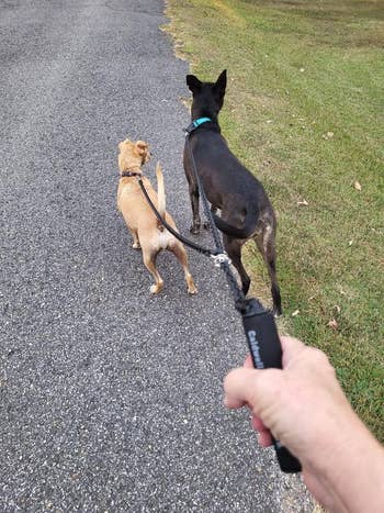 We hope you love our recommendations! While every product is independently chosen by our editors, BuzzFeed and our publishing partners may collect a share of sales or other compensation from the links on this page. You can read more about how our affiliate partnerships work in our Editorial Standards & Ethics Guide. Just some affordable pet parent life hacks, because Chewy doesn't gatekeep. Promising reviews: "My kitty loves her Christmas house and I love it too; the cardboard is thick and strong and I appreciate the locking feature of all the tabs. It wasn’t hard to put together at all. She is 11 lbs and has plenty of room. The cathedral ceiling inside is so cool, I wish I could lay in it!" —Jill "Sooo cute. I loved at the moment I put it together. It was very easy to put together. Even my husband noticed how cute it was AND remarked on it. Everyone who sees it also says how cute it is. Our cats loved it too. It is big enough to fit a fat cat. I recommend getting at least two if you have several cats." —Tabitha Promising review: "My babies love these I got two different houses one for each of them and they love them, they will play in and out of them, and will even take naps in them!" —Laura Promising review: "I have two cats and two dogs. Hair is everywhere. A friend recommended the Chom Chom and it was the best pet purchase I have ever made. Works better than a vacuum and is small, so it can be stashed near the furniture without being seen. If you are considering purchasing this item, just do it. See before/after photos." —chey Price: $24.99+ (originally $31.95; available in three colors) Promising review: "I don’t typically write reviews, but this leash has been such a game changer walking my two rowdy dogs who are always twisting and turning. My walks consisted of me untangling the leashes the entire walk. I previously had another two-dog leash, but the part where it splits was too low, so my dogs were always running into each other. This leash splits closer to the handle, which is ideal. I also thought that having a longer 6-foot leash was better, but it’s nice that this is a little shorter, so more control and less chance of the dogs getting tangled. Only thing that would make it perfect would be to have anti-reflection of some sort, but this is already an amazing leash at a great price." —Pete Price: $14.99 (originally $32.99; available in three colors) Promising review: "We don't use collars for walking our dogs; we only use harnesses. But even though they have microchips and tags on their harness, I was concerned that they might slip out accidentally and have no harness for anyone to see who they are and our phone number, so they wear their collars all the time (and sometimes I wash them in a mesh bag) and they have remained bright and sturdy for a long time now." —Kimberly Price: $18.95 (available in four sizes, five colors, and personalization of thread color) Promising review: "Our boy loves these mats. He digs at them, chews them, throws them around. Totally recommend it if you're looking for enrichment. We put one in each room of the house, and it prevents him from chewing our carpets and baseboards." —Luis Price: $4.91 (originally $5.99; also available in a three-pack) Promising review: "With three dogs running around, this camera is a lifesaver! I can check who’s barking or making a mess even when I’m out. The app is easy to use, the sound is clear, and the motion detection works fast. Definitely a must-have for furparents with many pets." —Astrea Promising review: "I have a 14-year-old Akita mix that devours every toy we have gotten him. He never stops tearing them apart, so most only last less than a day. In 14 years, we have purchased four large Kong toys, which he receives nightly. That is a record none can beat. Plus, no nylon shards in your dog's gut." —Kathy Price: $7.96+ (originally $8.99+; available in six sizes) Promising review: "I wish I had bought this a long time ago! It makes it so much easier to throw farther (and saves my throwing shoulder)! I bought additional balls so I can rapid-fire — totally wears out my German Shorthaired Pointer!" —NotoriouslyK Promising review: "These wipes are absolutely essential! With three dogs, they make it incredibly convenient to clean muddy paws on rainy days or give their faces a quick wipe. I love how easy they are to grab on the go, and the generous size is a big plus. Highly recommend!" —Lornea Price: $13.99+ (available in three pack sizes) Promising reviews: "This gets used every day which is rare for anything I buy her. She scratches, grooms then naps on it. Too cute!" —Kathy Price: $18.19 (originally $19.99; also available in a two-pack) Promising review: "We have a dog who gets stressed with fireworks, so every holiday that involves fireworks, we fill this up, freeze it, and she's happy. Be careful leaving them alone with it because my other dog tore it up once the treat was gone." —Aly Promising review: "I have used this product for years — puppies, adult dogs, senior dogs, healthy and ailing, and I would not be without it. Accidents happen, and when they do, this product removes the evidence — no smell, no stain." —Connie Price: $13.57+ (originally $15.99+, available in two sizes) Promising review: "I wasn’t sure if this was going to be useful or one of those things that just ends up not being used, but this has been a godsend! We usually wipe their feet with a towel when they come in from the outdoors, but this really cleans without traumatizing my dogs with a hose when they get really muddy. And even when their paws don’t like look too dirty, the color of the water after using this tells me otherwise. So easy to use and doesn’t freak them out. I love this Mudbuster!" —Karleen Price: $9.07+ (originally $16.99+; available in three sizes and colors) Promising reviews: "What a difference this has made for our little Yorkie who had been so itchy. We saw such a dif