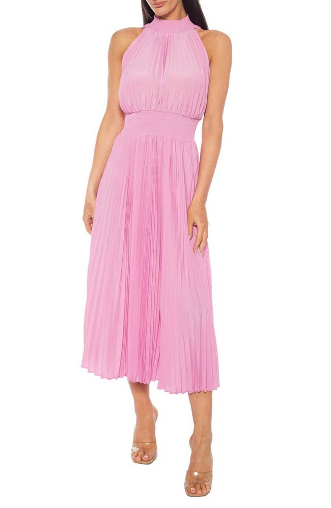 We hope you love our recommendations! While every product is independently chosen by our editors, BuzzFeed and our publishing partners may collect a share of sales or other compensation from the links on this page. You can read more about how our affiliate partnerships work in our Editorial Standards & Ethics Guide. These dresses were made for kissing in the rain and running through airports. Unless otherwise specified, all sizes in this post are listed in women's. Price: $64.97 (originally $215; available in sizes 1X–3X and five colors) Promising review: "This dress fits perfectly and is super comfy! Very well-made! I look forward to wearing it! Love it!" —PAS03 Price: $79.97 (originally $250+; available in sizes XS–XL and four colors) Price: $59.97 (originally $148; available in sizes XS–XL) Promising review: "It’s a beautiful dress. Touches knees. Wore it for a V-Day party!" —Archie2024 "Beautiful ruby red fabric is a comfortable, sexy little dress!!" —Sherjane Price: $59.96+ (originally $245; available in sizes XS–XL and three colors) Price: $24.97 (originally $89; available in sizes S–L and two colors) Promising review: "Absolutely loved this dress! The ruching in the back made it a comfortable fit with my larger bust. I’m 5’8 and the dress just grazed the floor when I’m barefoot." —Kristen G. Price: $49.97 (originally $128; available in sizes XS–XL and three colors) Price: $59.97 (originally $141.25; available in sizes 1X–3X) Promising review: "I love this dress! I got it in purple and am probably going to get it in blue too. Layered perfectly, and the flowers actually are textured, which is adorable. It fits true to size, minus this back strap, which is a little loose on the back, but it gets covered by the flutter sleeves, so it's fine. Super adorable! Can't wait to wear to all my spring events." —niknak23 Price: $59.97 (originally $128; available in sizes XS–XL and three colors) Price: $44.97 (originally $99.99; available in sizes 14W–24W) Promising review: "This dress fit perfectly. If you want a dress that is comfortable, has movement, and can be worn a little off the shoulder, this is it! Tip: You can also add a belt to break the dress up a bit. This was a perfect summer wedding dress." —DanaPM Price: $69.97+ (originally $198; available in sizes 1X–3X and six colors) Price: $130.97 (originally $328; available in sizes XXS–XXL) Promising review: "Absolutely love this dress! The small works PERFECT. Just needs a hem, but overall a great find and half off." —macybucek Price: $195.97 (originally $488; available in sizes XXS–XXL) Promising review: "This dress looks very beautiful in person. The material is of good quality and holds its shape. It is also very comfortable, thanks to the smocked waist and pleating. (My weight fluctuates, and this will never be too tight.) Also, the color is a very pretty shade. Bright but not obnoxious." —OGLexy Price: $74.97+ (originally $149; available in sizes 4–16 and nine colors) Promising review: "This is a little large up top for my size, but I'm also pear-shaped. This dress makes me feel gorgeous and rich!" —Joysette Price: $59.97 (originally $140; available in sizes 14W–22W) Promising review: "This dress is gorgeous. It is very well-made. It is very chic. The fit is perfect. It is true to size. The length is excellent. I am 5’7. It is of great quality. I love that dress so much. I highly recommend it." —NFHanna Price: $89.97 (originally $208; available in sizes 14W–22W) Promising review: "Beautiful dress and perfect slit. I received so many compliments, great evening out, and I can’t wait to wear it again. The length was perfect for wedges, and it was comfortable through the waist and chest. I did use double-sided tape to keep the top portion in place. I’m about 240#, wear a 40H and I bought this dress in a 3X." —Kitabelle Price: $47.96+ (originally $118; available in sizes 2X–4X and three colors) Promising review: "I received so many compliments on this dress at a recent gala. Fit is true to size, and the beading is gorgeous." —NYCashley Price: $129.97 (originally $239; available in sizes M–XL and four colors) Price: $39.97 (originally $84; available in sizes S–L and seven colors) Promising review: "Bought this dress as the mother of the groom in blue! Love this dress! I bought a small one, it is true to size and good quality material." —Anonymous Price: $89.97 (originally $250; available in sizes XS–XL and four colors) Promising review: "I bought this for a winter wedding, and it did not disappoint. It's elegant, and the ruching makes my waist look way more snatched than it actually is. I am 5'10, and the dress is nice and long." —Sstrasser Price: $54.97 (originally $108; available in sizes 2–14) Promising review: "OH MY GOSH!!!! I bought this for summer because my husband and I are planning a beach trip, and it would look amazing for a beach dinner. It looks amazing on the chest!" —Anonymous805 Price: $74.97 (originally $225; available in sizes 6–14 and two colors) Promising review: "This dress for great. I got so many compliments! Just tested up the belt and got some matching earrings, both purchases at the Rack!" —JacquelineMae Price: $89.97+ (originally $265; available in sizes 2–14 and three colors) Price: $59.97 (originally $142.50; available in sizes 1X–3X) Promising review: "Love this dress!! It’s true to size. For bustier gals, be sure to take that into consideration when trying to support up top. I’m a 34 DDD and wore a medium. It’s so fun. Wore it to an outdoor wedding and got so many compliments!!!" —eileen07 Price: $69.97 (originally $119; available in sizes XXS–XXL) Promising review: "Bebe dresses have never disappointed me, and this dress is not the exception. Particularly, I love, love, love this dress. I am 5’5, 126ish pounds, 34D bust, 27 waist, and 34-36 hips. I ordered an X-small, and it fits so beautifully that I'm p