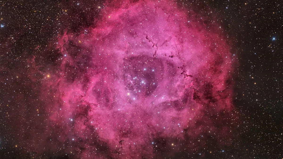 Space and Yahoo may earn commission from links in this article. Pricing and availability are subject to change. When you buy through links on our articles, Future and its syndication partners may earn a commission. A cosmic rose blossoms amidst a field of stars in this deep space vista from astrophotographer Ronald Brecher, which captures the ancient light of the star-forming region as it glows in the constellation Monoceros, the "unicorn," 5,000 light-years from Earth. The 100-light-year-wide expanse of the Rosette Nebula is estimated to have a staggering mass the equivalent to 10,000 suns and has been sculpted and eroded by the radiation from nearby stars. Dark filaments of hydrogen gas thread the scene, blocking the light of stellar giants beyond, while the blue-white stars of the open cluster NGC 2244 can be seen carving out the vast cavity in the heart of the vast nebula flower. Some of the stars in the cluster are true behemoths, 50 times the mass of our sun. ZWO ASI533MC Pro The ZWO ASI533MC Pro camera is the best dedicated astro camera out there, in our opinion. It features zero amp glow, 80% quantum efficiency and a 20FPS frame rate. It also features a 9MP sensor and you can check out our ZWO ASI533MC Pro review for a more in-depth look. Like old love made new, Brecher had initially captured the nebula's ancient light over the course of almost 10 hours worth of observation time back in 2021, but he recently returned to the data, reprocessing it with new techniques โ and greater experience โ using the astrophoto software PixInsight. Nebulas take on radically different appearances when viewed in different wavelengths of light. The optical wavelength โ which we see with the unaided eye โ presents a swirling maelstrom of dust and gas, like that seen in Brecher's image, while ultraviolet and infrared observations help reveal the stars dotted within. You can explore the different aspects of the Rosette Nebula on Viewspace.org. Want to explore the night sky for yourself? Then be sure to check out our roundups of the best telescopes and binoculars available in 2026. Photographers may also want to peruse our picks of the best cameras and lenses for capturing the post-sunset realm. Editor's Note: If you would like to share your astrophotography with Space.com's readers, then please send your photo(s), comments, and your name and location to spacephotos@space.com.