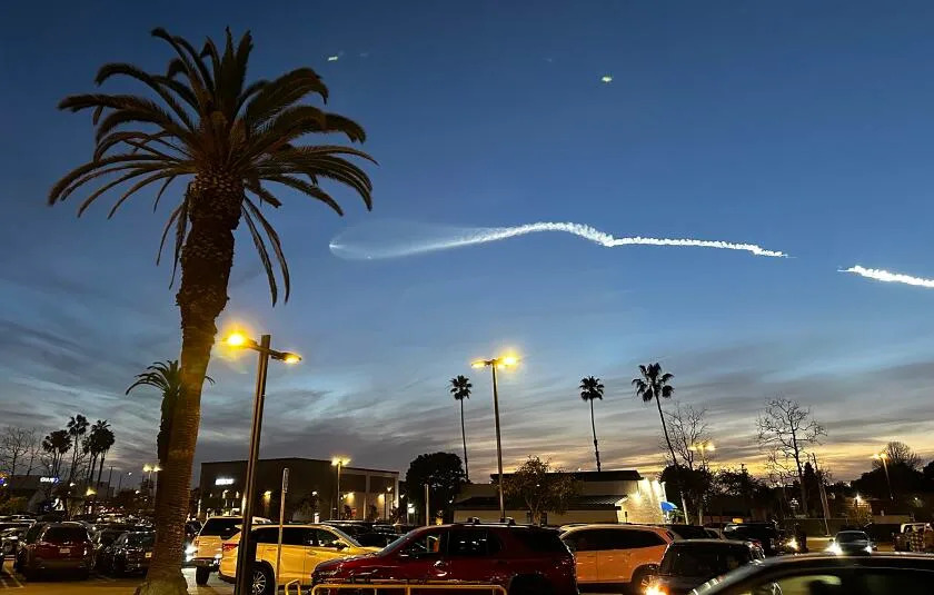 Southern Californians out on Saturday night for Valentine's Day took a break from staring longingly into each other's eyes to gaze at something else: a SpaceX rocket blazing across the early evening Southland sky. SpaceX launched a Falcon 9 rocket on Saturday night from Vandenberg Space Force Base in California. The rocket carried 24 Starlink satellites to low-Earth orbit, according to the company. Starlink, SpaceX's satellite internet provider, has launched about 11,000 Starlink broadband satellites into space since 2019, using its workhorse Falcon 9. Read more: Shooting for the moon. How Elon Musk's SpaceX is faring At 7:03 p.m., SpaceX posted to X, the social media platform formerly known as Twitter, that the 24 Starlink satellites had successfully been deployed. SpaceX said on its launch page that residents in Santa Barbara, San Luis Obispo and Ventura counties might experience one or more sonic booms during the launch, a phenomenon that has long upset residents and raised concerns about the booms' effect on nearby endangered species. SpaceX has three more launches scheduled from Vandenberg this month, the next expected to take place Wednesday, according to the company's site. This was the fourth SpaceX Falcon 9 launch from Vandenberg this month. The Falcon 9 is a reusable, two-stage rocket. After its stage separation process Saturday night, the rocket's first stage will land on the "Of Course I Still Love You" drone ship, which will be stationed in the Pacific Ocean, according to the company. "Love is in the air," one X user quipped, "and so is Falcon 9." Times staff writer Laurence Darmiento contributed to this report. Sign up for Essential California for news, features and recommendations from the L.A. Times and beyond in your inbox six days a week. This story originally appeared in Los Angeles Times.