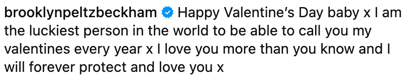 The PDA comes after Brooklyn’s 14-year-old sister, Harper, offered a sweet olive branch to her big brother on Valentine’s Day.