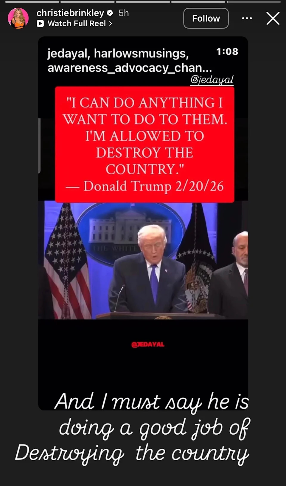 Christie Brinkley Credits Trump For 'Doing A Good Job Of Destroying The Country'