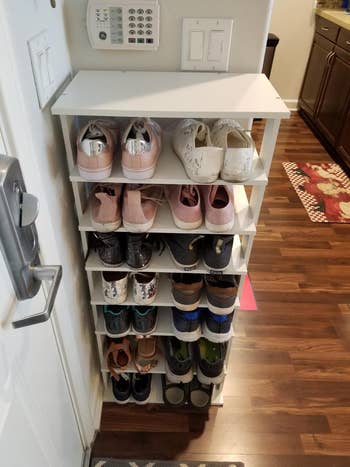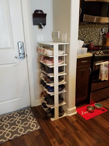 We hope you love our recommendations! While every product is independently chosen by our editors, BuzzFeed and our publishing partners may collect a share of sales or other compensation from the links on this page. You can read more about how our affiliate partnerships work in our Editorial Standards & Ethics Guide. I spy with my little eye — a TBR pile that's going to topple over at any minute. Promising review: "OMG, I love these things! Such a simple idea; how did I ever live without them? They hold all the different circumferences of spice bottles. If some spices are too big to place all in the same connected row, you can cut off a tab and separate them. It doesn't really affect the items on the shelves; you just have to push them back a little (maybe half an inch or so), so the spices have clearance when the door is shut." —Bridget D. Get a set of six from Amazon for $12.99 (also available in sets of four in two colors). Promising review: "These are so cute and very easy to set up. I have my hairclips and scrunchies in them. I love that they are stackable, so they don't take up too much space. They're about the same size as my hand, so they're relatively small. They're good for storing little things like mini hand lotions and hand sanitizer. If you're thinking about getting them, I highly recommend them!" —Dog_Mom Get a pack of six from Amazon for $9.99 (also available in two other sizes and six colors). Check out a TikTok of the Command spray bottle hangers in action. Promising review: "Love these! They have helped organize all my products underneath my kitchen sink. The Command hooks are strong, and nothing has budged, even with the weight of the spray bottles! Highly recommend." —Talayfor87 Get a set of two from Amazon for $8.99. Promising review: "This was a great shelving item. I was wanting something to utilize space more effectively under my kitchen sink. I knew that I had space at the top of the cabinet that was wasted. This shelving was exactly what I needed. I was so impressed with the durability and the ease of construction. I would definitely buy this item again with no qualms." —Dianna W. Get it on Amazon for $26.87+ (available in two colors). Btw, the inserts are removable and adjustable, so you can create bigger or smaller compartments as needed! Promising review: "Cute box that stores all of my baby's hair accessories. It feels sturdy and long-lasting. I love how you can customize the size of the compartments. The color is so cute. The handle makes it so easy to carry around, and the plastic feels durable and thick. Best part is that it's stackable, so you're saving space. Thinking about buying another set to stack." —Jojo Get it from Amazon for $17.99+ (available in six versions). Promising review: "This is perfect for what we are looking for. It had to fit in a smaller space and served to stop a puddle of shoes from forming at the doorstep. I am glad that we have smaller feet/shoes, though, as the spaces are a bit narrow. There are only two larger spaces that would work for high-top shoes or heeled boots. All the other spaces fit flats or low sneakers well." —Sara C. Get it from Amazon for $39.99+ (available in two sizes and three colors). Promising review: "We loved these containers and have now bought 20 to hold our entire game closet! We have been able to fit multiple games in some. Easy to store and easy for my kids to find and then put away when finished. Good quality, haven't had any problems with durability yet, and we play a LOT of games." —bradfieldfamily Get a pack of 10 from Amazon for $49.49 (also available in a notebook size). Promising review: "I love these stackable jewelry trays. They take up less space on the dresser but organize the jewelry remarkably well. When stacked and the top one covered, your jewelry can remain dust-free. There are more than enough holders, which are lined with a non-abrasive cloth. Well made and great for organizing." —Alot2do Get a set of four from Amazon for $32.99 (available in four styles and different pack options). Promising review: "This ring/jewelry holder is a little bigger than I expected it to be, and definitely is more suitable to a nightstand or dresser than on a bathroom vanity. That being said, the construction is very sturdy and it can easily hold a lot of jewelry. This is a great gift for a jewelry collector who already has a ton of jewelry and needs an innovative way to store and display it. There are a ton of branches on the tree, and each can easily fit four to seven rings or necklaces." —Tom Get it from Amazon for $18.98+ (available in four colors). These come with optional sticker labels, so you know which size bag you're grabbing. Promising review: "I like it very much. Not so large. Lightweight. Would look nice on top of the counter. What I like is that you do not have to wrangle the box into the slots. Simply pick up the roll of bags from their packaging and put them in the designated slot." —Amazon Customer YouCopia is a woman-owned small business that specializes in home storage solutions. Get it from Amazon for $19.99+ (available in three- or four-slot models). Promising review: "Awesome quality, and HUGE! I’ve wasted money on cheaper versions of this and now I know I won’t go back. Really sturdy, and holds more than you expect. Using in my sewing room for fabric, interfacing, and batting and it works like a charm. Going to order another one for my other closets because this was inspired me to use it everywhere." —Alexis Crumer Get it from Amazon for $28.95+ (available in 11 colors). Promising review: "I am so happy I found this little gem of a product. I got one for myself and one for a friend who I was helping get organized. The little pockets are great and hold more than you think they will. I love that the front of the pockets is a clear view, so you can see everything that is in the pocket. The product is very sturdy and really super easy to put together and hang