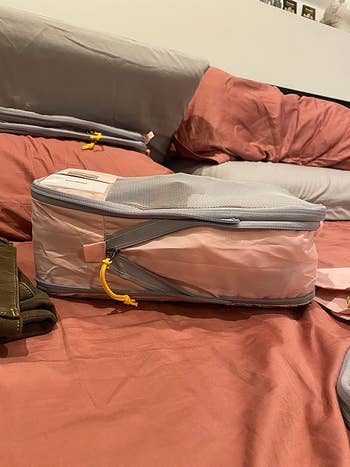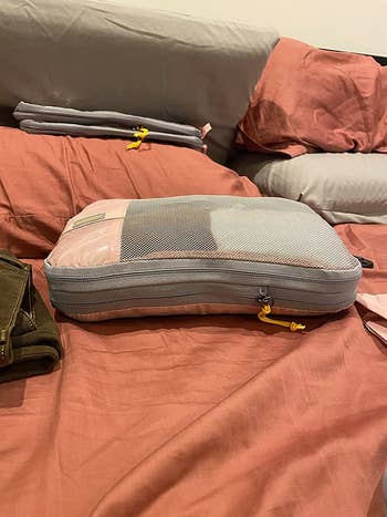 We hope you love our recommendations! While every product is independently chosen by our editors, BuzzFeed and our publishing partners may collect a share of sales or other compensation from the links on this page. You can read more about how our affiliate partnerships work in our Editorial Standards & Ethics Guide. It'll feel like you've got a PhD in packing with how much you can fit into these packing cubes. Promising review: "I love these! They are a great substitute for a vacuum bag. I am a chronic over-packer and always have trouble fitting everything I need/want in my luggage. I was able to pack everything I needed for a 4-day trip into a personal item, with space to spare, because of these bags. I would absolutely recommend these to anyone trying to save some space in their luggage!" —Amanda Bouton Get a set of two from Amazon for $12.79+ (available in 31 colors and size options). Former BuzzFeed Shopping editor Jasmin Sandal says: "I swear by these bad boys not only for general storage purposes but also if I know I'm going to be traveling for an extended period of time. Plus, the satisfaction is indeed guaranteed because when you see those chunky layers flatten into a pancake...it's just *chef's kiss*." Promising review: "These Spacesaver vacuum bags are awesome! With having a lot of luggage to take with me on international flights, every inch of space counts, and seeing your clothing and other materials reduced by 80% makes these bags a wonderful and necessary purchase. Two thumbs up, I highly recommend this product!" —Thomas G Wintringham Get a six-pack from Amazon for $18.99 (available in four sizes as well as other multipacks). Note: This can get flagged with going through security, so you may want to put it in an easily accessible place in your checked bag to be safe. Promising review: "I travel a lot for work and usually take a lot of measures for extra security, such as keeping the luggage roller in my room all week and rolling it in front of the door. It was large and cumbersome, but with this gadget, it's great! You can use it on almost any door and works better than the makeshift 'fork' one. Frequent traveler or not, this item offers peace of mind which can prove invaluable while away from home. (I can even use it on my door at my house!)" —Deactivated Get it from Amazon for $10.79 (also available in a two- or four-pack). Promising review: "I couldn't be happier with this light. I use it for reading in bed and when I travel. It's comfortable, has multiple settings, is easy to use, and the battery stays charged for a long time. You can turn on either one or both sides of the light and its flexibility allows the light to be adjusted easily. I highly recommend this light for reading in bed, for outdoor walking at night, and for doing close work that requires good lighting." —Jean G Get it from Amazon for $17.09+ (available in seven colors and two sizes). Truffle is a women-owned small business that specializes in bags and accessories that are TSA approved or stadium approved. Promising review: "I travel for work quite a bit and love to add this to my travel uniform. It’s hard being away from the comforts of home, but when the things you travel with are of the best quality and offer practicality, it can feel special. If you like quality, don’t hesitate! No more plastic bags for me! ;)" —SOFÍA J. Get it from Truffle for $80+ (available in four sizes and eight colors). Hairbrella is a Black-owned small business that has been creating fashionable hats that protect hair from all kinds of weather since 2016. Promising review: "I traveled to London last month with a raincoat that did not have a hood, and I wanted something that would protect my head/hair/blowout without lugging an umbrella. This definitely did the trick. Two of the three days were rainy (some quite heavy) and my hair stayed totally dry. It stows nicely, too. I'm still learning how to adjust it while it's on my head (easier to adjust first and then put it on). Also, when I do have it tightened/pulled to the right place, the loop/slack from where I adjusted it sort of sticks out and gets in my peripheral vision. I wish the adjustment/clasp was on less prominent. But, all in all, this is perfect for anyone who wants to keep their blowout fresh in the rain." —Miss Information Get it from Amazon for $39+ (available in eight colors). All it is is a hood attached to a vest you wear under *any* jacket to protect yourself (and your hair) from whatever the weather has planned. Promising review: "LOVE this hood! I've been looking for something like this for a long time - what a great idea!! Most of my coats and jackets don't have a hood, and this is the best way to keep my hair dry when wearing them. My hair frizzes like crazy if even one drop of rain hits it (or fog or wind) so this is definitely a must-have for my wardrobe and life. I really like the way it looks too - like wearing a hoodie under a jacket but it's not bulky or hot. I can throw it in my purse or pocket and it's there to keep my hair just the way I like it. Love it, love it, love it!!!" —Terry Thornburgh Get it from Amazon for $29 (available in two sizes). Promising review: "I purchased two of these for our one-week Disney World trip. I knew I’d be walking around A LOT, and my feet aren’t used to the many miles of walking a day in the hot and humid environment, so I didn’t want to be uncomfortable. I'm happy to say I put it on once in the morning, slipped on some socks and comfy shoes, and I didn’t get one blister or issue with my feet! I wish I knew about this a long time ago!" —Michelle Get it from Amazon for $8.99 (also available as a bundle). Promising review: "I was in Arizona during a continuing 100+ heat wave on a vacay tour. I didn’t use it the first day and ended up with rubbed thighs due to rough seams on shorts and excessive heat. I then used this everyday without additional rubbing rash. This stuff is awesome!!!! I