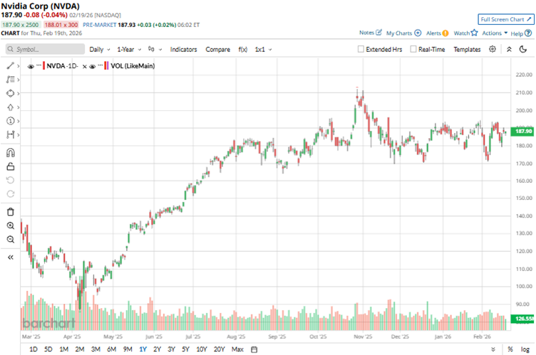 Semiconductor industry leader NVIDIA Corporation (NVDA) has struck a multi-year, multi-generational partnership with social media behemoth Meta Platforms (META), expanding the deployment of NVDA CPUs in Meta’s data center production applications. Meta is also expected to scale its artificial intelligence (AI) workloads with NVDA’s Spectrum-X Ethernet and adopt the company’s Confidential Computing for WhatsApp private processing. Given the partnership announcement between two tech-industry heavyweights, Needham analysts have reiterated their bullish stance on the chipmaker. Needham analyst N. Quinn Bolton gave a “Buy” rating and a $240 price target, implying a 27.7% upside from current levels. Bolton also wrote in a note to clients that the collaboration would be a “positive catalyst” for NVDA into 2026. The analyst asserts that the company remains the “primary beneficiary” of the AI hyperscaler spending spree. If Palantir is Near a Bottom, What's the Best Play in PLTR Stock? NVDA Earnings, Tariffs and Other Key Things to Watch this Week Adobe (ADBE) Stock Has Been Beaten Up But the Smart Money Remains Resilient Tired of missing midday reversals? The FREE Barchart Brief newsletter keeps you in the know. Sign up now! We look into the chipmaking giant and a bit into Meta against this backdrop. NVIDIA Corporation pioneered GPUs for gaming and graphics and has since evolved into a leader in AI and accelerated computing, with a current massive market capitalization of $4.61 trillion. The company continues to experience explosive growth in its data center segments, driven by high demand for GPUs such as the Hopper and Blackwell platforms used for AI training and inference. Cloud providers and enterprises continue to invest heavily in AI infrastructure, outpacing supply. The company’s stock is up about 36% over the past 52 weeks, while it has increased 1.78% year-to-date (YTD). It had reached a 52-week high of $212.19 in October 2025, but is down 11.8% from that level. On a forward-adjusted basis, NVDA’s stock is trading at a price-to-earnings ratio of 40.47x, higher than the industry average of 22.65x. Let’s talk a little bit about Meta before we get into NVDA’s fundamentals. It’s ironic that the reason investors prefer NVDA is the same reason they're concerned about Meta, i.e., AI. Basically, Meta’s rising AI spending is concerning to its investors. The social media giant expects its expenditures to nearly double this year, compared to 2025, raising doubts about its margin expansion. Over the past 52 weeks, Meta’s stock has declined by 5.64%, while it is down by 0.67% YTD. Big tech AI spending is growing to an unprecedented scale, with the big four hyperscalers (including Meta) expected to spend close to $700 billion combined this year. This increase in hyperscaler capex is expected to put pressure on their free cash flows. Meta has also engaged in layoffs to keep its AI ambitions alive, mainly in its Reality Labs segment, which focuses on “metaverse” operations. However, the company’s core operations continue to grow. In the fourth quarter of fiscal 2025, the daily active people (DAP) across Meta’s family of apps averaged 3.58 billion in December 2025, reflecting a 7% YOY increase, while revenue from its family of apps increased 25% YOY to $58.94 billion. Moreover, analysts remain optimistic about Meta Platforms’ prospects, expecting upside from the stock. NVIDIA’s Q3 FY2026 revenue has increased 62% year-over-year (YOY) to $57.01 billion. This was led by the company’s data center revenue, which grew by 66% YOY to a record $51.20 billion. The company’s non-GAAP EPS climbed 60% annually to $1.30. For the fourth quarter of fiscal 2026, NVIDIA expects its revenue to be $65 billion, plus or minus 2%. The company’s CEO, Jensen Huang, commented that NVDA has entered into the “virtuous cycle of AI,” with the ecosystem scaling fast. Wall Street analysts are robustly optimistic about NVIDIA’s future earnings. They expect the company’s EPS to climb by 70.6% YOY to $1.45 for Q4 FY2026 (to be reported on Feb. 25, after the market closes). For fiscal 2026, EPS is projected to surge 51.5% annually to $4.44, followed by 58.3% growth to $7.03 in fiscal 2027. In addition to Needham analysts, Wall Street analysts have been bullish about NVDA’s stock. In January, analysts at Jefferies maintained a “Buy” rating on the stock and raised the price target from $250 to $275. Jefferies analyst Blayne Curtis sees upside from the company’s introduction of Accelerator builds and the models that accompany them. Analysts at RBC Capital reiterated their bullish “Outperform” rating on NVDA and maintained a $240 price target. RBC Capital analysts remain confident in the company’s gross margin outlook amid higher memory costs, as HBM pricing for 2026 has already been secured. They highlight Blackwell-driven frontier model debuts and GTC as key catalysts, with supply-chain talks signaling robust Rubin growth to sustain momentum through 2027. NVIDIA has been in the spotlight on Wall Street for some time now, with analysts awarding it a consensus “Strong Buy” rating overall. Of the 50 analysts rating the stock, a majority of 44 analysts have rated it a “Strong Buy,” three analysts suggest a “Moderate Buy,” two analysts are playing it safe with a “Hold” rating, and only one analyst gave a “Strong Sell” rating. The consensus price target of $255.55 represents 34.6% upside from current levels. Moreover, the Street-high price target of $352 indicates an 85% upside. On the date of publication, Anushka Dutta did not have (either directly or indirectly) positions in any of the securities mentioned in this article. All information and data in this article is solely for informational purposes. This article was originally published on Barchart.com