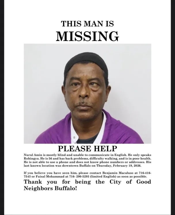 A nearly blind refugee was found dead in Buffalo, N.Y., after Border Patrol agents abandoned him miles from his home, the Investigative Post, a local news outlet, reported Wednesday. Nurul Amin Shah Alam’s body was discovered Tuesday night and his death is currently under investigation, police said. The Erie County Medical Examiner determined that his death was “health related in nature,” and not due to exposure or homicide, according to Buffalo City Hall spokesperson Ian Ott. Shah Alam, a 56-year-old Rohingya refugee from Burma whose attorney noted he did not speak English, is survived by his wife and two sons. Buffalo police arrested Shah Alam last year after he ended up on a woman’s porch during a walk, and allegedly did not drop a curtain rod that he was using as a walking stick, the outlet reported. Two police officers experienced minor injuries in the incident, per Reuters. Mohamad Faisal, one of Shah Alam’s sons, told Reuters that the arrest stemmed from a misunderstanding. Shah Alam didn’t comprehend the commands to drop the walking stick and was arrested as a result, Faisal said. After agreeing to a plea deal, Shah Alam posted bail and was released from detention on Feb. 19, only to be picked up by Border Patrol, who were notified of his release by the Erie County Sheriff’s Office, a spokesperson for the office said. According to Reuters, Immigration and Customs Enforcement had issued an immigration detainer for Shah Alam before his release and wanted to take him into custody. However, Shah Alam’s attorney Benjamin Macaluso told the Investigative Post that the terms of a recent plea his client made enabled him to “clear” the detainer and avoid detention. Rather than take Shah Alam into federal immigration detention or drop him off at his house, Border Patrol left him at a Tim Hortons miles from his home – though potentially close to an old address – and did not notify his family, the Investigative Post reported. “Border Patrol agents offered him a courtesy ride, which he chose to accept to a coffee shop, determined to be a warm, safe location near his last known address, rather than be released directly from the Border Patrol station,” a spokesperson for Border Patrol claimed in a statement to Buffalo Toronto Public Media. “He showed no signs of distress, mobility issues or disabilities requiring special assistance.” Faisal told Reuters that “nobody told me or my family or attorney where my dad was dropped off.” His father didn’t read, write or use electronic devices, he added. Temperatures have often been below freezing in Buffalo this past month. Macaluso opened a missing person’s case on Saturday. Police briefly closed the case Monday on the incorrect belief that Shah Alam was in immigration agents’ custody. The Erie County Medical Examiner identified Shah Alam on Wednesday morning, the Investigative Post and Buffalo Toronto Public Media reported. “A vulnerable man − nearly blind and unable to speak English − was left alone on a cold winter night with no known attempt to leave him in a safe, secure location,” Buffalo Mayor Sean Ryan (D) said in a statement. “That decision from U.S. Customs and Border Protection was unprofessional and inhumane.” By entering your email and clicking Sign Up, you're agreeing to let us send you customized marketing messages about us and our advertising partners. You are also agreeing to our Terms of Service and Privacy Policy.