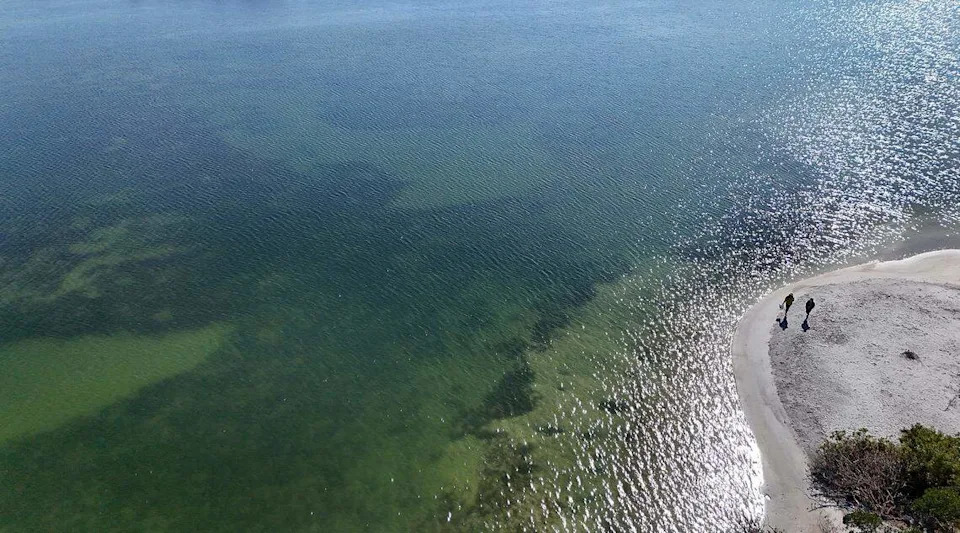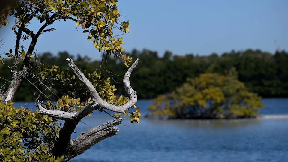 From ground level, it’s a world of its own. Tiny crabs skitter the shoreline. Oysters dangle on mangrove roots. Seabirds dive shallow waters inhabited by fish and sea turtles.