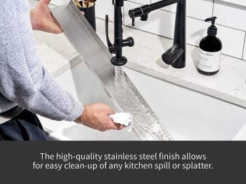 "I wasn’t sure what to expect, but this oven back shelf is awesome. I had a mishap once where a full bottle of cooking oil ended up shattered on the kitchen floor...behind the oven. That’s not even possible now. It makes all my cooking necessities look so nice and neat, it's easy to clean, and it's stable. Really added a nice finishing touch to my kitchen." —Jon & Kel