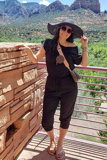 Promising review: "This is my very first romper-type clothing purchase. I had been putting it off because I was afraid it wouldn't look right on me, but I decided to try this one, and I'm so glad I did! It's sooo comfortable and stretchy and looks cute!" —Jen