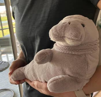 Promising review: "My grandson likes that it can get warm in the microwave and cold in the freezer. He loves manatees. He thinks it is really soft and really cute! (He told me to write this.)" —Grandma Marva