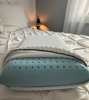 Promising reviews: "This is heavenly relief for side sleepers. The way the pillow supports the back of your neck is way better than any pillow I’ve ever tried before (and I’ve tried a bunch over the years). But please note: follow the instructions on fluffing it up in the dryer before use. You’ll soon have a pillow that you’ll fall in love with!" —Jan D.