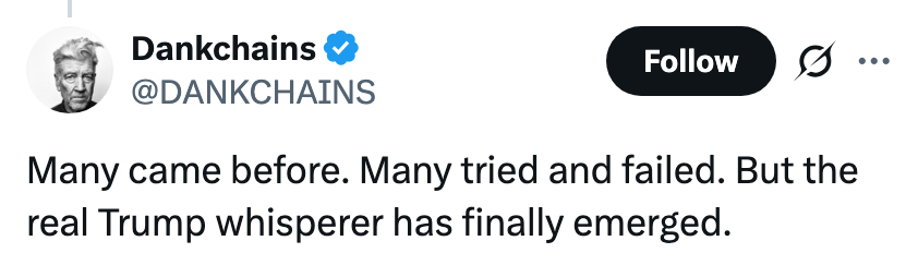 "Many came before. Many tried and failed. But the real Trump whisperer has finally emerged."