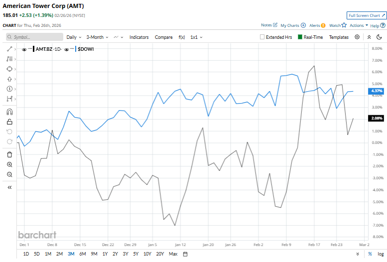 American Tower touched its 52-week high of $234.33 on Jul. 24 and is currently trading 21.1% below that peak. Meanwhile, AMT stock prices have declined 2.1% over the past three months, lagging behind the Dow Jones Industrial Average’s ($DOWI) 4.4% rise during the same time frame.