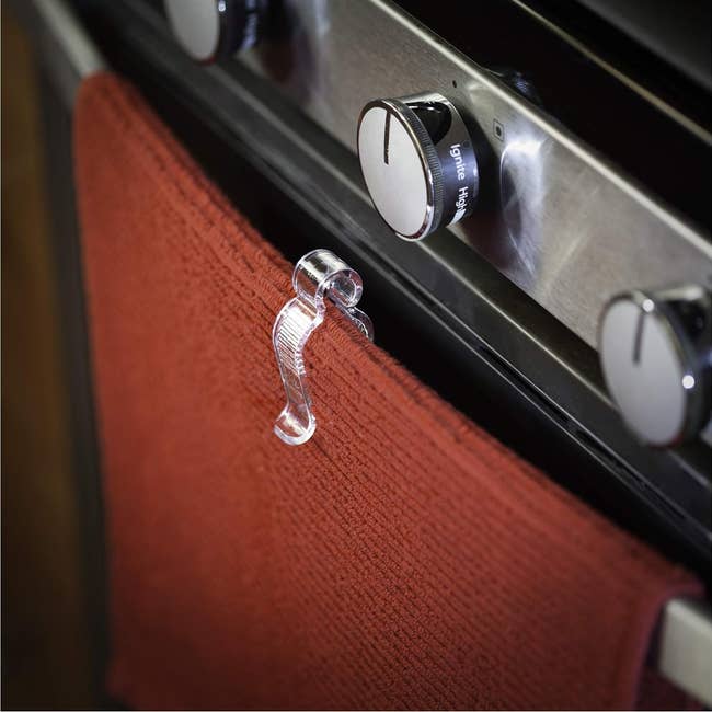 Promising review: "This clip is amazing. No more towels falling on the floor. It was becoming a routine thing since my cat thinks it's fun to pull the kitchen towels off the oven. Not now, bad kitty! Great product...wish I had bought one sooner!" —Joanna