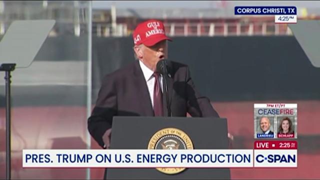 Trump held a rally in Corpus Christi, Texas, just days ahead of Tuesday’s primaries in the state. The president used the opportunity to tout his energy policies. The president began his speech by recounting a phone call he said he had with Texas Governor Greg Abbott (R):