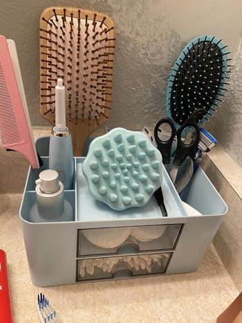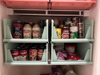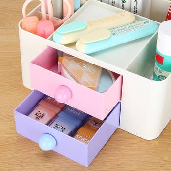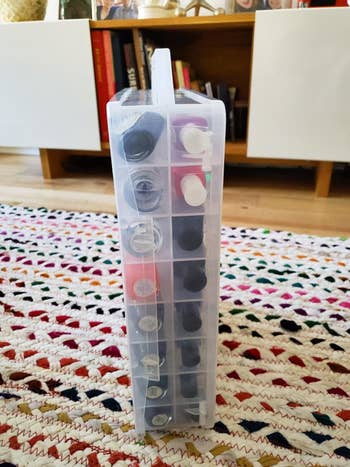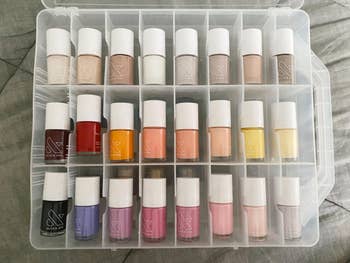 We hope you love our recommendations! While every product is independently chosen by our editors, BuzzFeed and our publishing partners may collect a share of sales or other compensation from the links on this page. You can read more about how our affiliate partnerships work in our Editorial Standards & Ethics Guide. Everything will be in its place, even the weird, nomadic knickknacks that you've never known what to do with. Promising reviews: "I love how easy these were to put together. Barely any effort for assembly. I use them for laundry overflow. When I've folded clothes but don't have the energy to put them away yet, but don't want them on my bed. lol. They are extremely sturdy, and they stack so easily." —Lady Kreshawn "Most organized my hallway closet has ever been in 35 years. The green trays are sturdy and stack nicely on top of each other. Lightweight. I put heavier items in the bottom trays. And lighter items in the upper trays, so they slide easy and maintain their balance when sliding them back or forwards, depending on which tray you're getting your items out of. And a nice size and good deal for the price." —Placeholder Get them from Amazon for $35.99+ (available in four colors and two sizes). Promising review: "So far I really love this! It looks organized and nice on my countertop. It holds all my brushes/sponges easily and seems like really good quality. It didn't require any assembly other than just adjusting the compartments to my liking. The drain is really convenient, and I haven't noticed any leaking." —Emma Get it from Amazon for $13.99+ (available in 17 colors). Promising review: "Cute, practical, useful, convenient. It's only $9, so just get it. It's small but not too small to fit all of your essential bathroom stuff. It sits in the corner of my sink perfectly. I love the little drawers; they fit more stuff than you'd think. It works great and looks great in the bathroom and in the office." —Joey Get it from Amazon for $8.99 (available in three colors). Promising review: "This product is exactly what I'm looking for. My closet feels more organized, and I can layer the purses based on what's most used. I love how sturdy it feels." —Li Luong Promising review: "Ready to use right out of the box. Now able to keep my water bottles organized instead of falling out of the dish drain I keep on the counter to dry them, and then reuse them. This allows me to store them when they dry instead of playing dish jenga when I try to pull one out! Great purchase!" —ashevillegirl Get the 12-bottle organizer from Amazon for $22.99 (available in three sizes). Promising reviews: "I’ve tried a few polish organizers, but this one is easily the best. All polishes are easy to see and the case is easy to store. I’ll be buying another when I fill this one up!" —Katherine "Item itself arrived crack-free, love the translucent pink color. Now I can store my polishes in this perfect case and not have my husband yell at me for having my thousand nail polishes laying around in random areas of the house! Ha! No cons about this product at all! Love that it is double-sided! I can also store my brushes in the adjustable slots on the side. I will be purchasing another one for my mother-in-law as well!" —Kat C. Get it from Amazon for $26.99+ (available in two sizes and two colors). Check out a TikTok of the Command spray bottle hangers in action. Promising review: "Love these! They have helped organize all my products underneath my kitchen sink. The Command hooks are strong, and nothing has budged, even with the weight of the spray bottles! Highly recommend." —Talayfor87 BuzzFeed Shopping editor Sally Elshorafa has a lot of good things to say about these: "This product SAVED MY SHOES! I have an awkward set of built-in shelves in my closet, and it was the only place I wanted to put my shoes. As you can see from the before pic (above), it was a big mess; my shoes were piled on top of each other and getting really dirty. Traditional shoe caddies or boxes didn't really work because there's not much horizontal space, so I tried the Shoe Slotz. It fixed the problem perfectly! Because the design smartly stacks one shoe on top of the other, you save 50% of the space you'd normally use to store your shoes." Promising review: "Confession time. I am a bit of a shoe fiend. These little shoe slots have allowed me to fit way more shoes in my closet shelving (yay!) AND having them organized like this keeps my shoes much nicer — since they aren't all scraping against each other. It also helps me remember which shoes I have — since they are all visible. :) The little heel stoppers pop out every so often when I am getting shoes, which is sort of annoying, but still a 5-star purchase." —MoniqueRamsey Get a set of 10 from Amazon for $34.99 (also available in a pack of 20 and 40). Print AuSable3D is a small business based in Michigan that sells 3D-printed goods. Promising review: "It's an adorable little container! I'm very happy with my purchase." —Spenser Get it from Print AuSable3D on Etsy for $8+ (available in four sizes and 14 colors). The mat comes with a non-slip rubber bottom, three sorting trays, and a storage bag. Promising review: "This is awesome! Living in an apartment with limited surface area, I was always hesitant to do big puzzles because it would monopolize the space for weeks. All that changed with the puzzle mat! Great surface and good size. I can do my puzzles as I like, and then if we need the table, I can roll it up and tuck it away. Pieces stay in place with limited need to reset. This has allowed me to do many more puzzles, and that makes me happy. Highly recommend!" —Laura Get it from Amazon for $52.97+ (available in five styles). Promising review: "Travel with ease!! Before this product, I would take all my supplement bottles with me in my purse which took up an unnecessary amount of room. Now, with this product, I can travel easily with all my daily supplements. 