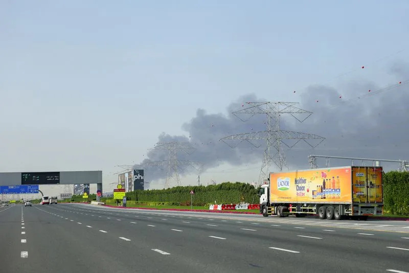 By Maha El Dahan and Andrew Mills DUBAI, March 1 (Reuters) - Debris from an intercepted drone damaged an Abu Dhabi complex housing the Israeli embassy and several other international missions, causing minor injuries to a woman and her child, Abu Dhabi's state media office said on Sunday. Debris from the drone fell against the facade of the Etihad Towers complex after an interception that caused loud sounds heard across the emirate, the media office said. After the U.S. and Israel launched strikes on Iran on Saturday, Iran said it would target U.S. bases in the region. But it has also hit a range of civilian and commercial areas across Gulf cities, widening the conflict’s impact on key regional aviation and trade hubs. As retaliatory strikes widened on Sunday they reverberated across Gulf Arab states, with loud blasts heard in Dubai and the Qatari capital Doha and with Oman being hit for the first time. PORTS TARGETED In Dubai, two people were injured after shrapnel from drones fell over two houses when they were intercepted, a Dubai state media office statement said. Dubai's international airport, its landmark Burj Al Arab hotel and man-made Palm Jumeirah Island all suffered damage overnight, as did Abu Dhabi's international airport. Thick black plumes of smoke continued to rise from the Jebel Ali port area, where one of the berths caught fire on Sunday because of debris from an intercepted missile. State-owned logistics firm DP World has temporarily paused operations at Jebel Ali Port, according to a notice seen by Reuters. The operator said the move was taken as a precaution following the recent regional developments and following the direction of relevant government authorities. The operator's Jebel Ali Port and adjacent free trade zone account for 36% of Dubai's gross domestic product. The company says it handles around 10% of global container traffic with operations spanning countries including Angola, Britain, Canada, India and Peru. Dubai Media Office and DP World did not immediately reply to requests for comment. Large plumes of smoke were also seen rising at Abu Dhabi's Zayed Port area, according to a Reuters witness. In neighbouring Oman, which was spared retaliation on Saturday, Duqm commercial port was targeted by two drones, wounding one worker, the state news agency said. Dubai is the biggest tourism and trade hub in the Middle East and its airport is one of the world's busiest travel hubs. Qatar's interior ministry said on Sunday that it was responding to a limited fire in an industrial zone after debris fell from an intercepted missile. (Reporting by Maha El Dahan in Dubai and Andrew Mills in Doha; Additional reporting by Sarah El Safty in DubaiEditing by Edmund Blair, Aidan Lewis)
