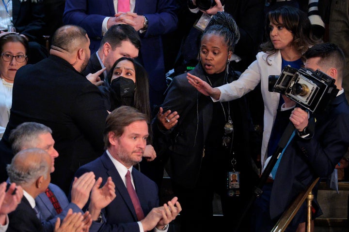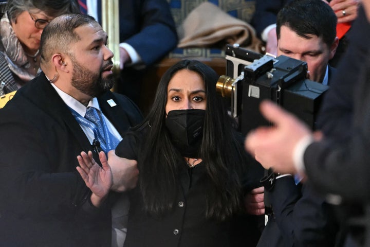 WASHINGTON – When President Donald Trump wished “happy birthday” to a World War II veteran who had just turned 100, Aliya Rahman stood up to clap. When Trump made racist comments about Minneapolis’ Somali community, saying they hail from cultures “where bribery, corruption and lawlessness are the norm,” Rahman stood up again, not clapping, and saying nothing. This is pretty standard fare for attending a State of the Union address, which Rahman did on Tuesday night, as the guest of Rep. Ilhan Omar (D-Minn.). Knowing they’re on national TV, members of Congress spend the whole night calculating when to stand up and clap in support of something the president says, or when to decidedly not stand up, in a display of disagreement. Their guests and others seated in the balcony above sometimes stand up at moments, too. Except on Tuesday, Rahman was arrested for it. It’s as bonkers as it sounds. Rahman, a Bangladeshi American software engineer based in Minneapolis, says she and others seated near had already stood up several times before police officers approached her and told her she “couldn’t stand up.” She didn’t think they were serious, but moments later, they grabbed her by the shoulders and dragged her out. “I just stood up,” Rahman said in an interview. “I stood silently, with no signs. I was not blocking anyone’s view of the hall. And then I was arrested.” Her shoulders were already injured. Last month, Rahman, who is autistic and has physical disabilities, was driving to a doctor’s appointment in Minneapolis when federal Immigration Customs and Enforcement agents surrounded her car, smashed in her window, dragged her out and locked her up at a federal detention center where she claims she experienced severe medical neglect and violence at the hands of ICE officers, requiring hospitalization for assault. An eyewitness captured her incident on film, and footage of Rahman’s violent encounter with ICE went viral. Fast forward to a few weeks ago, and she was testifying to Congress about the abuse she endured that day that she believes nearly killed her. Some women sitting near Rahman at the State of the Union recognized her from her testimony, and tried to intervene as she was being dragged out. One was an attorney who asked if Rahman needed one. Another was Dr. Anita Patel, who was a guest of Rep. Joaquin Castro (D-Texas) and who knew of Rahman’s injuries. “She stood up silently, did not make a noise, and was [descended] upon as if she was a criminal while she wore an n95 mask and used a cane,” Patel wrote in a Thursday Instagram post. “I jumped over the railing and said, ‘You need to let her go. She has bilateral shoulder injuries. She has a traumatic brain injury, and she’s neurodivergent,’” Patel said in the video she posted. “They subsequently continued to pull her. Then I got in front of them. They told me, either I step aside or I get dragged out with her.” Patel added: “Don’t let them twist her story into something that it’s not.” Rahman says after she was ejected from the event, Capitol Police officers handcuffed her, took away her cane and held her in a stairwell. They wouldn’t say if she was under arrest, and as they jerked her around by her shoulders, she repeatedly asked for her cane. One officer responded, “You are walking,” meaning she didn’t need her cane. “Bullying, intimidating, not listening,” Rahman said. “Who takes a cane away from a disabled person? I’m trying to slow them down. I’m not resisting, I’m disabled.” Officers were aggressive enough with her that she had to be taken to George Washington University Hospital for treatment after they dragged her from the event. She was later booked at U.S. Capitol Police headquarters. Rahman said she suspects she was singled out because she was the guest of Omar, a frequent critic of Trump and someone routinely targeted with racist attacks by this administration. In a statement, U.S. Capitol Police said Rahman was arrested for “demonstrating.” “At approximately 10:07 p.m., a person in the House Gallery started demonstrating during the State of the Union Address,” reads their statement. “The guest was told to sit down, but refused to obey our lawful orders. It is illegal to disrupt the Congress and demonstrate in the Congressional Buildings, so 43-year-old Aliya M. Rahman of Minneapolis, MN, was arrested for D.C. Code §10-503.16 - Unlawful Conduct, Disruption of Congress.” A Capitol Police spokesperson further said standing up is considered a form of demonstration. “Yes – standing (not just standing monetarily with the crowd) is a form of demonstration,” the spokesperson said in an emailed message. “The officers had no idea what her background was or whose guest she was. They told her to sit down multiple times. She refused. It’s simple.” HuffPost requested a copy of the Capitol Police report on Rahman’s arrest, but was told they aren’t available to the public. Rahman’s attorney, Jessica Gingold of the MacArthur Justice Center, said it is “unprecedented” for someone to be ejected from a State of the Union address for standing up silently, never mind being criminally charged for it. The charge can come with up to six months in prison. They’re hoping to get the case tossed before Rahman’s hearing takes place. “Our reading of the statute, we’re assuming it’s the part about uttering ‘loud, threatening or abusive language,’ or engaging in ‘disorderly or disruptive conduct,’” Gingold said of the D.C. code. “She did none of that. She stood up.” She noted “many other people” have been outspoken in past State of the Unions, and for some reason, “Aliya is a uniquely situated person, the only one charged with this kind of offense.” “Our strong belief is this should be dismissed,” Gingold said. Omar, too, condemned police officers’ treatment of Rahman. “The heavy-handed response to a