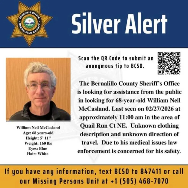 Maj. Gen. William McCasland was the Commander of the Air Force Research Laboratory at Wright-Patterson Air Force Base in Ohio. In that position, he was "responsible for managing the Air Force's $2.2 billion science and technology program as well as additional customer-funded research and development of $2.2 billion," his U.S. Air Force bio says. That's a powerful position and, now, McCasland has mysteriously disappeared. That's caused some people on social media to draw parallels to the Nancy Guthrie abduction. As with Guthrie, 84, McCasland, 68, is an elderly person with some prominence and medical issues who suddenly disappeared in the American Southwest. Beyond that, though, there is no indication of any connection, and authorities have not said there is; unlike Guthrie, authorities have not said that McCasland, of New Mexico, was abducted, and he's not getting a lot of news coverage. They've issued a silver alert for him. Still, as with Guthrie, the disappearance of William Neil McCasland is an odd case, largely due to his background. It's not every day that a retired general goes missing. Here's what's known about McCasland's disappearance. U.S. Rep. Melanie Stansbury published news of McCasland's disappearance on X late on March 1. "Bernalillo County has issued a Silver Alert for retired Maj. Gen. William Neil McCasland, a longtime leader at Kirtland and former commander of the Phillips Research Site and Air Force Research Laboratory," she wrote. Sheriff's release "He was last seen Friday morning near Quail Run Court NE, and due to medical concerns, authorities are asking for our community’s help. If you have any information, please contact the Bernalillo County Sheriff’s Office Missing Persons Unit at 505-468-7070 or text BCSO to 847411." It's not clear what those medical concerns are. Bernalillo County is in New Mexico. The Air Force released a statement on the retired general's disappearance. "We are coordinating closely with local authorities and defer all updates regarding the search efforts to the Bernalillo County Sheriff's Office," said Col. Justin Secrest, base commander of the 377th Air Base Wing at Kirtland, in a statement to the Albuquerque Journal."Our thoughts are with his family during this difficult time." The Bernalillo County Sheriff's Office posted a missing person's photo of McCasland on Facebook, writing, "Due to his medical issues, law enforcement is concerned for his safety." He was last seen at 11 a.m. His clothing and direction of travel were unknown. McCasland was also responsible "for a global workforce of approximately 10,800 people in the laboratory's component technology directorates, 711th Human Performance Wing and the Air Force Office of Scientific Research," his Air Force bio says. "General McCasland was commissioned in 1979 after graduating from the U.S. Air Force Academy with a Bachelor of Science degree in astronautical engineering. He has served in a wide variety of space research, acquisition and operations roles within the Air Force and the National Reconnaissance Office," it adds. "He commanded the Phillips site of Air Force Research Laboratory at Kirtland AFB, N.M., and served as Vice Commander of the Ogden Air Logistics Center and the Space and Missile Systems Center. He previously served at the Pentagon, first as the Director, Space Acquisition, in the Office of the Secretary of the Air Force, and then as Director of Special Programs, Office of the Under Secretary of Defense for Acquisition, Technology and Logistics," the bio continues. "General McCasland holds a doctorate degree in astronautical engineering from the Massachusetts Institute of Technology where he studied under a John and Fannie Hertz Foundation fellowship." Related: This story was originally published by Men's Journal on Mar 2, 2026, where it first appeared in the News section. Add Men's Journal as a Preferred Source by clicking here.