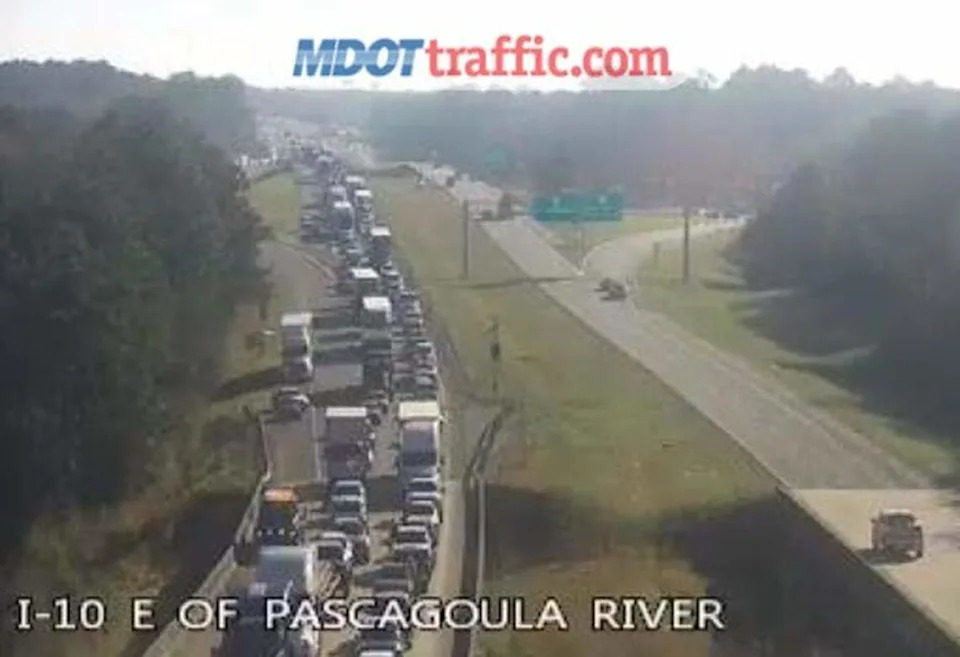 8:52 a.m.: I-10 westbound has reopened after nearly two hours. Traffic is moving slowly and MDOT says drivers should still expect major delays. 8:40 a.m.: Monday’s incident on I-10 westbound was a series of three crashes, according to Landon Orozco, a spokesperson for the Mississippi Highway Patrol. Orozco reports two of the crashes have been cleared, and it could take up to 45 minutes for westbound lanes to be reopened. He added that there were no life-threatening injuries in any of the crashes. 8:20 a.m.: At 8:17 a.m., MDOT reported that the backup is expected to last nearly another hour. ORIGINAL STORY The Mississippi Department of Transportation is reporting that all westbound lanes of Interstate 10 are closed in Jackson County. At 7:55 a.m. MDOT reported a crash near Exit 61 has shut down all traffic and the closure is expected to last at least 25 minutes. MDOT’s live traffic tracker shows the backup stretching from near the Mile 64 marker almost to Exit 69. This breaking news story will be updated as warranted.