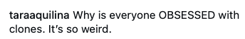 "Why is everyone OBSESSED with clones. It's so weird." If you must know, I based my entire personality on Seasons 2-5 of "Girls," and I'm a huge gamer.