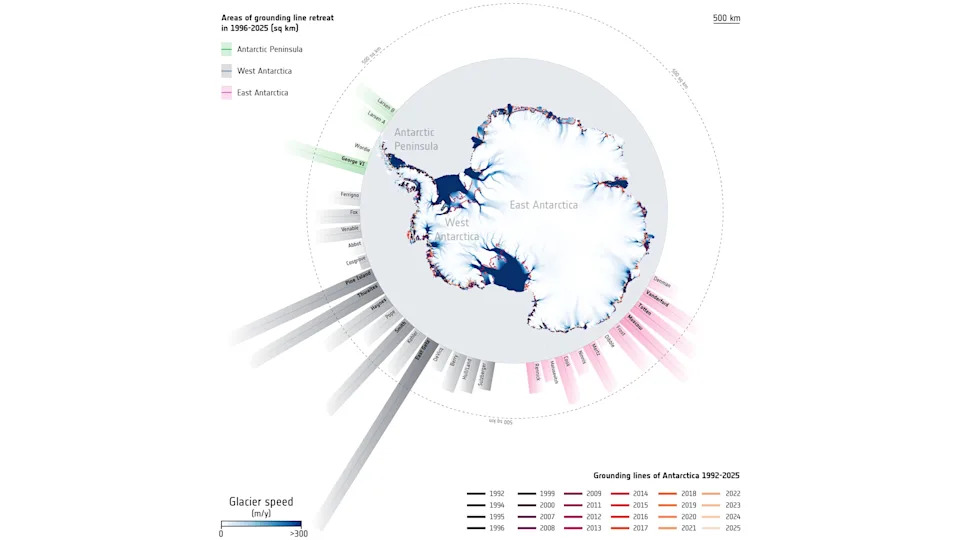 When you buy through links on our articles, Future and its syndication partners may earn a commission. A sweeping new satellite analysis shows that Antarctica has lost nearly 5,000 square miles (12,950 square kilometers) of grounded ice over the past three decades — an area roughly twice as big as Delaware — as warming ocean waters erode the continent's most vulnerable edges. Led by scientists at the University of California, Irvine, the study traces how Antarctica's "grounding line" — the boundary where ice anchored to bedrock begins to float on the ocean — shifted between 1992 and 2025. Because that boundary marks where land-based ice begins contributing directly to sea level rise, its retreat signals ice-sheet instability and future ice mass loss. "We've known it's critically important for 30 years, but this is the first time we've mapped it comprehensively across all of Antarctica over such a long time span," study lead author Eric Rignot of UC Irvine said in a statement. Rignot and his colleagues analyzed data from a wide range of satellite missions operated by European, Canadian, Japanese, Italian, German and Argentine space agencies. Using radar instruments, the researchers tracked the vertical movements of floating ice shelves caused by ocean tides. Grounded ice remained fixed on bedrock, allowing them to pinpoint shifts in the grounding line over three decades with unprecedented precision. The results show that about 77% of Antarctica's coastline experienced no detectable grounding-line migration since 1996, suggesting broad stability across much of the continent. But in vulnerable regions, particularly parts of West Antarctica, the Antarctic Peninsula and sections of East Antarctica, the study found "significant retreat." The largest changes were detected along the Amundsen Sea coast of West Antarctica and in the Getz sector, where the grounding line in some places pulled back by as much as 26 miles (42 km) during the study period. Retreat was most pronounced where deep underwater pathways funnel warm ocean water toward the base of glaciers, Rignot said. That warmer water melts ice from below, thinning floating shelves and weakening their ability to buttress the glaciers behind them. "It's like the balloon that's not punctured everywhere, but where it is punctured, it's punctured deep," said Rignot. The study also highlights a puzzling pattern along the northeast Antarctic Peninsula. In that area, several ice shelves collapsed before the study period and multiple glaciers have since retreated significantly, but researchers lack clear evidence that warm ocean water is driving the change. "Something else is acting — it's still a question mark," Rignot said in the statement. Beyond documenting what has already happened, the researchers say the new record provides a crucial real-world test for computer models used to project future sea level rise. "Models have to demonstrate they can match this 30-year record to claim credibility for their projections," Rignot said in the statement. "That's the real value of this observational record: knowing that this grounding line migration has happened." While much of Antarctica remains stable, Rignot cautioned that the current balance may not hold indefinitely. "The flip side is that we should perhaps feel fortunate that all of Antarctica isn't reacting right now, because we would be in far more trouble," he said. "But that could be the next step." This research is described in a paper published March 2 in the journal Proceedings of the National Academy of Sciences.