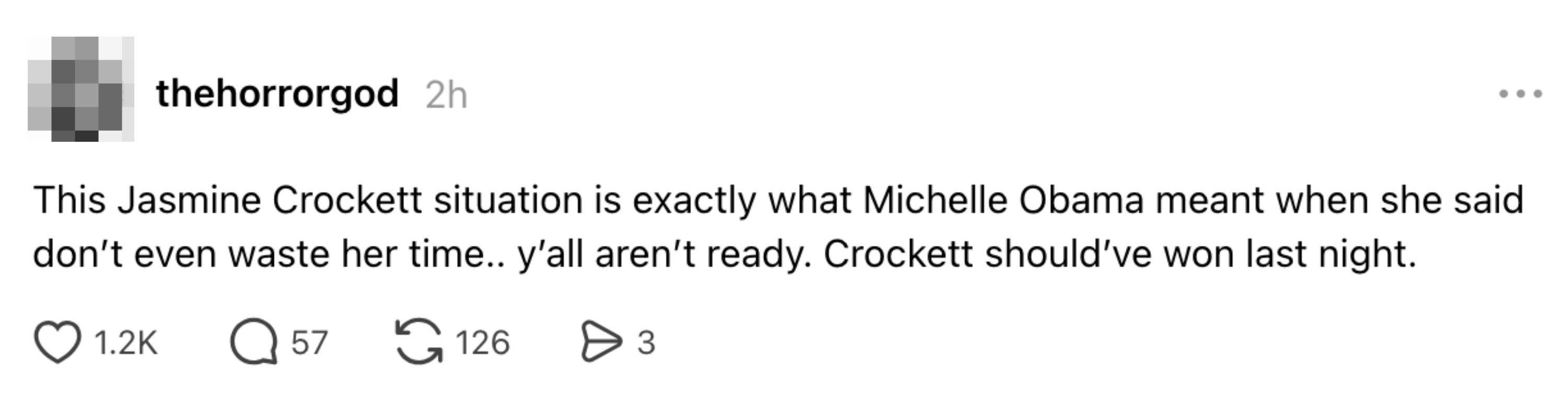 "if you honestly believe racism didn't play a part in Jasmine Crockett losing, then you're f**king idiots." Hi, I’m Michaela Bramwell, and I'm a Junior Staff Writer here at BuzzFeed, covering everything trending news, from your latest viral TikTok to the chaos of today's politics.