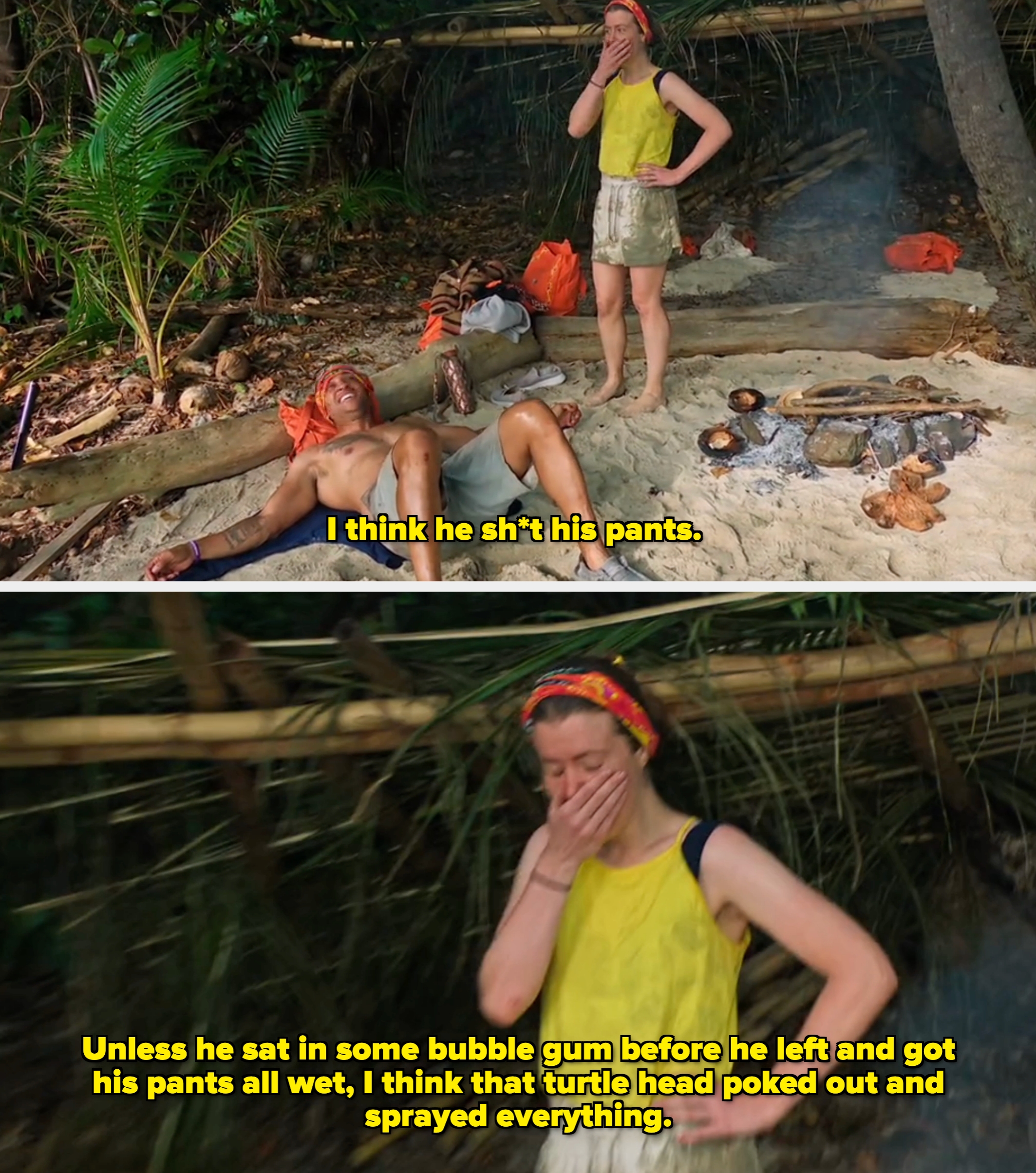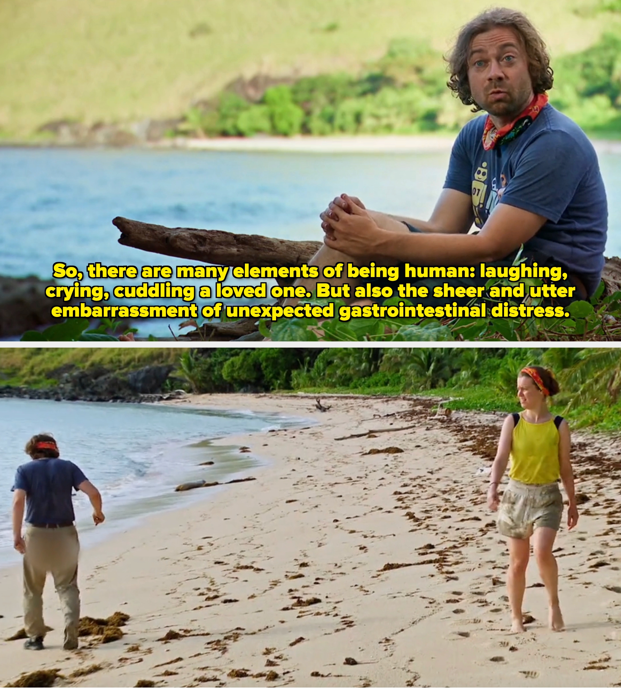 This is the FIRST time a contestant did this in 50 seasons of "Survivor," so here's a deep dive into what happened (and how contestants typically go to the bathroom on the show). You're welcome...or I'm sorry. I’m the Editorial Director at BuzzFeed — where I’ve reported on TV, film, and lifestyle trends (primarily travel, fitness, and food) since 2013 — and I also post about the latest in pop culture news to my 850k+ followers on TikTok. Wentworth also explained that aqua dumping takes some time to get used to, but "a couple days in, you're like this is normal." Christian was a fan-favorite player from Season 37's "David vs. Goliath" in 2018. He's iconic! Similarly, in Season 21, Fabio had to relieve himself mid-challenge. He actually jumped back in the water to do the deed, but luckily for him it was only to pee. Also, in Season 16, Amanda held her arm up for about five hours during a grueling immunity challenge, but she ultimately dropped out because she desperately needed to use the bathroom and didn't want to do it in front of everyone or on camera. And we can't forget the time in Season 24 when Tarzan may or may not have added his poopy underwear to the tribe's pot of laundry that boiled over the fire. He swore it was just caked-on dirt, but the rest of the tribe was definitely NOT convinced.
