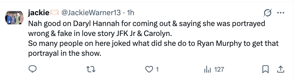 Daryl Hannah Calls Out Ryan Murphy’s “Love Story” As “Tragedy-Exploiting” And Misogynistic