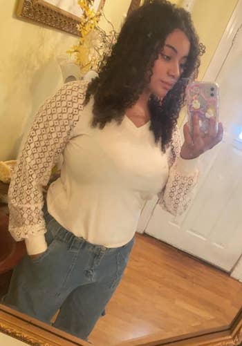 We hope you love our recommendations! While every product is independently chosen by our editors, BuzzFeed and our publishing partners may collect a share of sales or other compensation from the links on this page. You can read more about how our affiliate partnerships work in our Editorial Standards & Ethics Guide. Forget coordinating a full outfit, all you need is one of these stylish tops! Unless otherwise specified, all sizes in this post are listed in women's. Promising review: "To be honest, I didn't have very high hopes for a shirt this inexpensive. But at that price point, I also figured that I didn't have much to lose. I'm busty and have tattoos on my shoulders, so finding cute, comfortable clothing that's suitable for work and doesn't break the bank can be a challenge. This shirt looks exactly like an Elloquii one I've been eyeing for a while, but at a fraction of the price. I'll probably get the other colors as well!" —Arden Bee Price: $23.99+ (available in sizes 1X–4X and six colors) Promising review: "Feels so silky and comfortable. I hardly ever take it off. Except to shower. I wear it all day long and I sleep in it. I got some for my sister and for my daughter. I don't think I'll ever wear a bra again. A real game changer for me. I feel comfortable all day long. Be sure to size up if you have larger breasts." —Amazon Customer helen Price: $15.33+ (available in sizes XS–3XL and 37 colors) Promising review: "JUST GET IT! I had this blouse in my cart for a while and finally decided to purchase. I LOVE IT! It's gorgeous and I can't wait to wear it. I think it's so unique because it has a vintage look but also has a lot of versatility. It could be paired with high-waisted jeans, trousers, or skirts. I hope you love it too!!!" —ChristineMarie Price: $32.99 (available in sizes 2–20 and in four colors/styles) Promising reviews: "Love these sheer long-sleeve lace shirts. I've recently ordered three of these in different colors to wear under graphic tees and sweater vests. The quality is nice, and they run true to size. They are a great value for the price." —Donna K "I love this blouse. It goes well under my work uniform and is very sexy…" —Kelly Nurse Price: $7.99+ (available in sizes S–3XL and 22 colors/styles) Promising review: "Perfect blazer! Great quality for the price, fits true to size, and looks polished with jeans or work outfits. Very versatile and stylish — already getting compliments. I’ll be buying more colors!" —Jenn Price: $41.99+ (available in sizes XS–XXL and 23 colors) Promising review: "I have this sweater in several colors! The material is very soft and well-made. The sleeves are puffy but not overly big. It is lightweight enough to be able to tuck it in without looking bulky, but it is still warm. It is a very pretty sweater and looks and feels expensive." —Bloom and Blends Price: $16.99+ (available in sizes S–XXL and 23 colors) Promising review: "I love this top and will absolutely be buying other colors. It’s very soft and comfortable, but also super cute. Great enough top to make a girl who never writes reviews write one." —Delaney Price: $16.99+ (available in sizes XL–5X and 30 colors/prints) Promising review: "Such a cute work top!! Fits perfect and is so comfortable. Wore with jeans and work pants." —Jenna LeFevre Price: $19.99+ (available in sizes XS–4X and 23 colors) Promising review: "Love this sweater jacket! Just the right weight and goes with literally everything!! Great quality!! Love everything from this line!" —1a2b2b25y Price: $39.99 (available in sizes S–L and seven colors/patterns) Promising review: "Shirt fits as expected, beautiful color, and lace is well sewn. Love it." —Amazon Customer Price: $7.99+ (available in sizes S–XXL and 21 colors) Promising review: "This is a great top for a great price. It can be dressed up with a pair of slacks and a pair of boots, and possibly a blazer, or dressed down, tucked into jeans with pennies. I absolutely love it. It fits great, and at this price I’m gonna go back and get a couple more." —MustHaveBooks Price: $9.99 (available in sizes S–4X and 36 colors and patterns) Promising reviews: "I love these kimonos, I ordered two of them to try (the black and navy blue), and they fit and feel amazing. I just ordered two more in different colors. They're very thin, so they're great to wear in the heat if you want to cover up just a little bit. They not only go with a swimsuit but also with pretty much any outfit you wear. I have gotten so many compliments on mine and asked where I bought it! I have huge boobs, so I like to have a little cover-up over my regular clothes, and this is just what I was looking for! I highly recommend. They do run a little big, though. I wash mine by hand and hang dry because it is a very thin material, and I'm not sure how they would hold up going through the washing machine." —Cee Price: $9.99+ (available in sizes S–3XL and 30 styles) Promising review: "This silk blouse is absolutely stunning—soft, lightweight, and feels luxurious on the skin. The fit is great, and it works perfectly for both work and casual outings. Love the quality and the classy look. Will definitely buy more colors!" —Nayu Llanez Price: $31.34+ (available in sizes XS–XL and eight colors) Promising review: "I absolutely love this shirt! After my first purchase I ordered it in three different colors. All of them are beautiful. They come with a belt but you don’t have to wear the belt. It still looks cute without it. My weight fluctuates a lot, and I really like the fact that I can wear it when my weight is higher or lower. The shoulders are super cute. You can wear them up or down below the shoulder area. I always get compliments when I wear it. Go ahead and get this shirt. You won’t be disappointed. Its wrinkle resistant material and isn’t overly soft but absolutely not itchy. It has held up well through many machine washes so the quality i