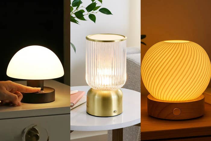 We hope you love our recommendations! While every product is independently chosen by our editors, BuzzFeed and our publishing partners may collect a share of sales or other compensation from the links on this page. You can read more about how our affiliate partnerships work in our Editorial Standards & Ethics Guide. Nothing kills the vibe like a harsh light source. That’s where smart, ambient lighting comes in. Finding the right lamps to strategically place around your home can bring a much-needed warmth and depth to your space, especially if you can mix it up with features like dimmers or different light temperature settings. Even better if they’re cordless and/or rechargeable, so you can move them around as needed for the best position in your home. We tracked down some gorgeous cordless lamps that can free you of the need for the big light for good. Most of these are table lamps (you’ll want to check the specific dimensions to make sure the sizes work for your space); all are under $50. Below, take a scroll through some of the many options out there for affordable cozy lighting. How can you miss the big light when these beauties are the alternative? Available at a 10- or 13-inch, this cordless lamp's rechargeable battery lasts up to 24 hours, and can be set on a timer of 30, 60 or 120 minutes. Use the remote control to adjust the RGB among nine colors, choose from three light temperatures or dim the brightness of the lamp. The lamp head is also able to be rotated 360 degrees, so you can easily direct light where you want it. These metal accent lights are powered by three AAA batteries (not included) and are 4 by 4 by 7.5 inches. The Edison style bulbs, which are included, cast a warm glow, and even though this one isn't rechargeable, the bulb is designed to last a long time. The design of the hollow black shades add some visual interest that would stand out on a shelf, side table or wherever else you choose to put these. Promising review: "Beautiful!!! Nice accent light. It’s slightly brighter than a candle, but that’s ok. It’s lovely and I am keeping them. ❤️" —Debra Get them from Wayfair for $25.99 (available in two colors). For a slightly more modern look, try this portable table lamp with a milk glass shade and three light temperatures (white, neutral and warm). The light is dimmable and so easy to operate — you can change the settings with just a tap. A Type-C cable is included for recharging this lamp, with a battery life of up to eight hours. Promising review: "Love love love this lamp! The first setting is a perfect warm light for the evening, and love that it can be dimmed. The battery lasts a few hours, so it does need to be charged frequently if you use it for hours at a time. Also as a bonus- it appears to be no flicker so easy on the eyes." —Julie If you've been seeing lamps shaped like mushrooms all over the Internet and been wanting to hop on the trend yourself, you might like this cordless take on it, which is easily portable at 6.1 by 5.75 inches. Available with three different base colors, the lamp features a frosted glass shade and dimmable LED bulb that's rechargeable. This spiral lamp is 3D-printed by LumaPureDesign on Etsy, and can be dimmed by touching and holding the power button for easy operation. It's petite at 3.8 by 3.6 inches, but can add a diffused warm light to the room that's great as a night light or reading light. The USB-rechargeable base lasts for hours on a single charge. Promising review: "Little bit small but projects a nice warm light, so perfect for what I wanted it for. Super simple to use too, and I love that there is no cord!" —Amara Cotchin Get it from LumaPureDesign on Etsy for $35. Have a more vintage- or antique-style taste in decor? Look no further than this table lamp with an acrylic crystal shade that would look nice on a table, desk, shelf and more. You can get up to 30 hours of light on a single charge, and the bulb is dimmable as well as able to switch between three light temperatures. Choose between a gold, white or black base, and a 1- or 2-pack. Promising review: "This lamp is the perfect solution for soft, ambient lighting during early mornings—no need to resort to the dreaded overhead light! Its gold detailing seamlessly ties into the elegant aesthetic we’re curating for this space, adding a touch of sophistication without stretching the budget. It’s a small yet impactful addition that balances beauty and functionality." —Samara Muntzinger This table lamp provides the added functionality of a motion-sensor setting, great for when you need a little light but don't want to turn on the big light. You can also toggle between "moonlight" and "daylight" settings for different warmth (though the motion-sensor setting only works on daylight mode). This lamp is 9.5 by 6 by 6 inches, and powered by C batteries. Promising review: "Used as a motion light for rooms works well. Often need to do something quick in a room and it gives enough light on motion detect and enough time to complete tasks. The C batteries last long. I travel with it. Heavy with batteries doesn’t tip. Cute appearance. Don’t have to worry about recharging or electricity. Not super bright but lights a room well. Option to turn on instead of motion detect-on mode. Has cool and warm light options." —Christine From Drew Barrymore's Beautiful line at Walmart comes this stunning mini table lamp in an eye-catching shade of green. The tamp is 7.9 by 4.3 inches, so it's better for smaller spaces like nightstands or desktops, and is rechargeable via USB-C. Promising review: "This little lamp looks pretty, can fit on a shelf, can be carried around to anywhere you might need light and not be dependent upon an electrical outlet. So far all the features are working properly. Arrived on time and well-packaged." —WalmartShopper This glass uplight is pretty and a little fancier-looking than some of the other lamps on this list with smoother shad