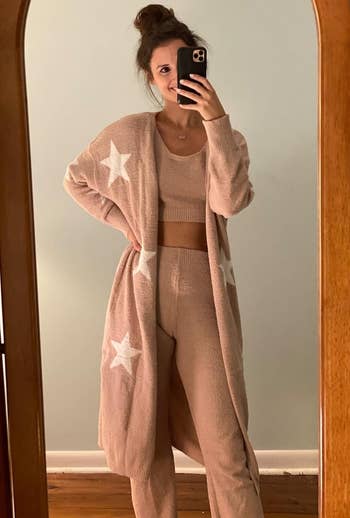 We hope you love our recommendations! While every product is independently chosen by our editors, BuzzFeed and our publishing partners may collect a share of sales or other compensation from the links on this page. You can read more about how our affiliate partnerships work in our Editorial Standards & Ethics Guide. Dinner would be so much more fun if you didn't feel like your clothes were stiff and cutting off your circulation. Unless otherwise specified, all sizes in this post are listed in women's. Promising review: "I’m in love with this set! 💫 It’s so soft and cozy, like walking around wrapped in a cloud. The long cardigan adds instant warmth and style, and the pants and top fit perfectly — super comfortable without feeling tight. You can relax at home or even step out for errands and still look chic. After washing, it keeps its shape and color. Honestly, it’s one of those outfits you never want to take off! 🥰"—Mariam Get it from Amazon for $49.99+ (available in sizes S–XL, two styles, and 18 colors). Promising review: "I needed a sweater that could arrive within a day or two for an outdoor event, and this was perfect. I honestly bought it based on the great reviews, and they were all very helpful. It comes in a variety of colors and I chose blue since most of my sweaters are black or brown. It is super soft and the quality is better than I imagined. I ordered a small and it was the perfect fit. It wasn’t too tight and I still had a little bit of room. Living in Florida, I don’t have a need for sweaters that often, but I will definitely buy another one of these in a different color. It is a bit off-the-shoulder, so you could even wear it over a mock turtleneck or a tank top. Definitely one of my best purchases in 2025." —Tracy Guida Get it from Amazon for $32.99+ (available in sizes S–XL and 26 colors). Promising reviews: "Super soft and comfortable to wear. I look forward to putting my pajamas on at the end of the day (or anytime on weekends). I have extremely sensitive skin, and these are so soft and comfortable." —Tinker "It was wonderful. I loved it so much, I have ordered two others after I was given one as a gift from my daughter. I now have three of them in black, lavender, and cream. They are beautiful and comfortable to wear." —Ruthann Stephens Get it from Amazon for $9.99+ (available in sizes S–3XL and in 35 colors). Promising review: "I got this set in royal blue. It fits true to size. They are beautiful, so comfy, and wash well. They are not even wrinkled out of the dryer. They are a little cooler than I expected. I thought they might make me too hot while sleeping but they don't! These are really perfect PJs in my opinion." —JBS Get it from Amazon for $16.63+ (available in sizes S–XXL and a variety of colors). Promising review: "I’ve been looking for a good cable knit sweater for a while and found this one. I wouldn’t say it’s extremely oversize, so true to size would work. It’s pretty comfortable, not scratchy, and perfect for layering with a vest, as it has just enough thickness to get away with not having to wear a coat. I would say it keeps its shape after washing, too. I haven’t noticed it getting stretched out. I’ll be ordering more colors for sure!" —Lisa Grant Get it from Amazon for $24.99+ (available in sizes XS–3X and 21 colors). Promising review: "This dress is extremely comfortable and makes me feel so damn sexy. It's very stretchy, which makes movement easy even though it contours your body." —Thundercat Get it from Amazon for $32.99+ (available in sizes XS–XXL and nine colors) Promising review: "Great quality! Love it! Very comfortable. The colors are so nice. Got a ton of compliments! Will get it in another color." —Aksana Get it from Amazon for $34.99+ (available in sizes S–XL and 19 colors/designs). Promising review: "This zip-up is so soft and cozy. I bought it with the matching sweats as a set, and I get so many compliments." —Laur Get it from Abercrombie & Fitch for $80 (available in sizes XXS–XL and five colors). Promising review: "These socks were a great value. My husband found them pretty quickly after I said I needed to buy socks because the weather was getting colder. I love them! They’re thick, but not so thick that they’re uncomfortable to wear. Good for lounging in the house." —Michael W. Get seven pairs from Amazon for $9.49+ (available in 16 styles). Follkee is a Chicago-based small biz that sells handmade cozy accessories. Promising review: "I LOVE these socks. I bought myself a pair to try them out, and now I've bought them for each of my aunts for Christmas. Cold feet run in the family so I know they'll love it. Great quality, fast shipping, and wonderful packaging. Couldn't be happier." —Brittany L. Get it from Follkee on Etsy for $39.49 (available in adult sizes S–L and five colors). Promising review: "I love it! It is the perfect weight and is VERY soft! Will be good for fall, winter, and spring, but is also good for cool mornings or evenings in summer. It came shrink-wrapped and smelled a little strong. I machine-washed on gentle and laid flat to dry. Washed beautifully! Looks great! Glad I bought two!! :)." —Cindylou Get it from Amazon for $39.99 (available in sizes S–XXL and 13 colors). BuzzFeed Shopping editor Kayla Boyd has been loving this jacket, and writes "I got this faux-shearling jacket for Christmas, and I have worn it tons since! It is soft, cozy, warm, and pretty much everything I want in a jacket. I love that it fits oversized so I can easily wear it over a sweater or hoodie. The front pockets are deep and easily fit my phone without feeling like it's going to fall out. And of course, I think it's really cute and stylish." Promising review: "This is the most amazingly soft and comfortable jacket I have ever owned. It’s like being hugged by a llama before being sheared. Like that warm, loving hug you would get from your mom right when you ne