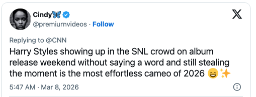 I literally screamed, "ARIANA WHAT ARE YOU DOING HERE?!" at my TV screen. If you must know, I based my entire personality on Seasons 2-5 of "Girls," and I'm a huge gamer. does ryan know how deep the lore goes between them? pic.twitter.com/lqA4PsLNKB genuinely how did this girl stay calm because I would be bright red, having heart palpitations, and moments away from collapsing pic.twitter.com/rghZQkeNAW accidentally showered too long and came out to harry styles on my tv and was legitimately so confused and concerned that i lost an entire week of my life for a second He arrived a week early I’m crine #harrystyles pic.twitter.com/t9v2pHlHtS this little eye rub thing he does whenever he gets shy or laughs.. he is so endearing it hurts pic.twitter.com/pWsNRG9ch2