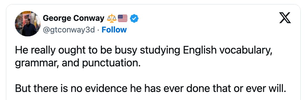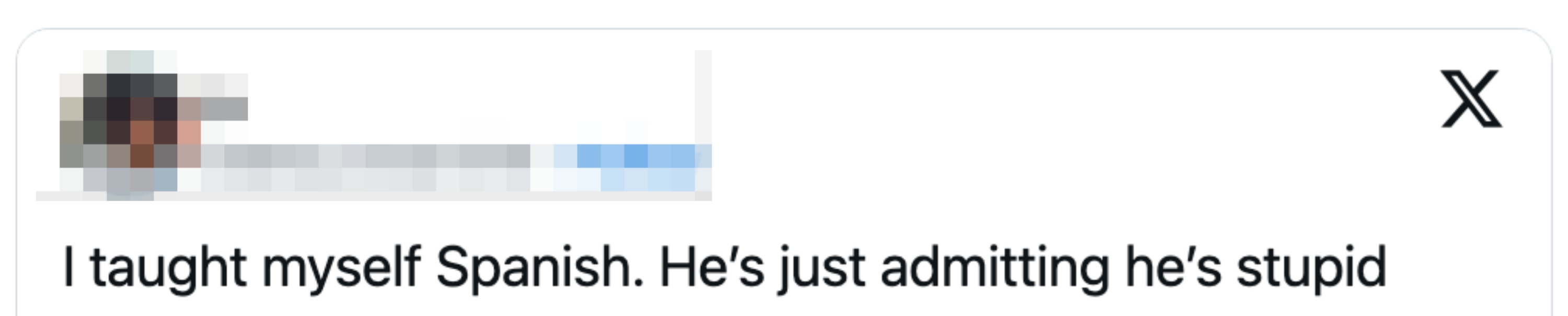 "He really ought to be busy studying English vocabulary, grammar, and punctuation." Hi, Iβm Michaela Bramwell, and I'm a Junior Staff Writer here at BuzzFeed, covering everything trending news, from your latest viral TikTok to the chaos of today's politics. Trump to Latin American leaders: "I'm not learning your damn language. I don't have time." pic.twitter.com/02eQBPS9Gv