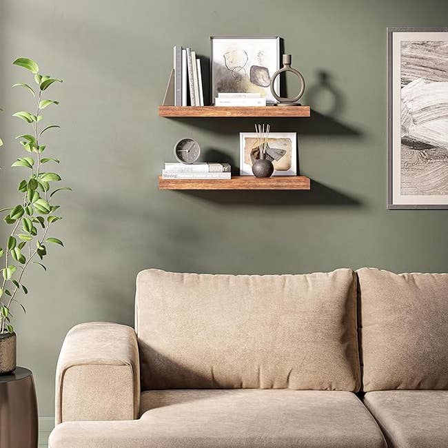 We hope you love our recommendations! While every product is independently chosen by our editors, BuzzFeed and our publishing partners may collect a share of sales or other compensation from the links on this page. You can read more about how our affiliate partnerships work in our Editorial Standards & Ethics Guide. Living in a shoebox doesn't have to be awful — after all, it's what's inside that matters. Promising review: "The perfect little table for a small space. I needed something for our tiny office/living room/guest room. This made the space so much more versatile without taking up valuable square footage. Easily folds when not in use, simple to put together." —M. Lincoln Get it from Amazon for $54.99+ (available in three colors). Promising review: "Took about 1.5 hours to put together alone, but I was also multitasking — this is a really great and functional table BUT also doesn’t break the bank!! I got this to serve as both a desk and coffee table for my small studio apartment and couldn’t be happier. If you’re even considering it, buy it. It’s worth it and has some solid storage space too." —Jo Get it from Amazon for $79.99+ (available in two sizes and five colors; plus two other styles). Promising review: "This mid-century modern coffee table has a wonderful design and offers a hiding spot for your cat! My cat took to it right away and loves sleeping on the soft mattress hidden inside the coffee table. The wood is quite heavy and sturdy. The assembly was fairly easy, with the step by step instructions it took about 20 minutes. I highly recommend this coffee table for cat lovers : ))" —Julie Get it from Wayfair for $91.99+ (originally $101.99+; available in three styles). Promising reviews: "This has been a game-changer for my laundry room organization. Its sleek design fits perfectly in tight spaces, maximizing storage without taking up much room. The four tiers provide ample space for all my supplies, keeping everything neatly organized and easily accessible. The mobility of this cart is a huge plus, allowing me to move it as needed effortlessly. Highly recommend for anyone looking to tidy up their laundry room or bathroom!" —jayden Get it from Amazon for $33.24+ (available in four colors). Ewart Woods is a small business based in Latvia that creates handmade organization and storage solutions that blend into your home decor. Promising review: "The sofa arm table is gorgeous; the color is great and fits perfectly on my sofa! The make of it is also great and seems like it would last. Definitely recommend." —Aubrey Get it from Ewart Woods on Etsy for $55.03 (originally $61.15; available in 10 colors and three styles). Promising reviews: "It's a great side table with ample storage. Great for organizing bedside stuff. Was easy to assemble as well. Good buy!" —SM "This only took me 25–30 minutes to assemble (I had the help of a 4-year-old and a cat, so it could’ve taken a lot less time). Everything was labeled to make it easy and quick to put together. It’s a super cute table and has two charging ports and two power outlets. No more need for power strips and cords everywhere! Awesome buy!!" —Home Builder Mom Get it from Amazon for $49.99+ (available in five colors). This comes with an E26 light bulb so it's ready to use outta the box! Promising review: "This fits perfectly next to my couch where we needed a table, but couldn’t quite fit an actual living room one. I also hate our overhead light, so this one is nice. It comes with a light bulb and is super bright. It took maybe 15 minutes to set up, and you barely needed the directions, it’s very straightforward. The quality is great, and it’s very sturdy. No wobbling around. Perfect for small spaces." —ALD It includes the necessary mounting hardware. Promising reviews: "My new floating nightstand may be small but it serves my bedroom in a big way, love it!!" —ToiToiToi "My kid wanted a nightstand but we had zero space for one where her bed is currently located. So this meets all our expectations." —wilanca Get it from Amazon for $37.99+ (available in two sizes and two colors). These are made with hidden mounting brackets and come with the necessary mounting hardware for easy installation. Promising review: "These shelves were the right length for a small corner I wanted to use for book racks in a nursery, so I gave them a try. They came very well packaged, with no chips, dents, or anything — in perfect condition. Very smooth, true bright white finish. They were easy to install by myself, with the large drywall anchors and long screws included. They stay firmly on the wall without wiggling and are deep enough to fit plenty of books. I can see these becoming nice toy display shelves in the future as well." —Hope Get a set of two from Amazon for $37.99+ (available in four sizes and five colors). Promising review: "So happy with this table. It’s larger than I had anticipated, which is great. Takes some time to assemble but it's totally worth it. In an NYC apartment, everyone appreciates furniture that can fold up and be neatly tucked away in a corner. It also arrived two weeks early which was great!" —Amber Martin Get it from Amazon for $80 (available in three finishes). The acrylic shelves come pre-assembled, and you can secure them with a single fastener. Indoor Window Gardens is a family-owned small business based in South Carolina. Promising review: "Not only do these shelves look amazing and give me so much more room for my plants but the customer service is amazing! I forgot to order extensions with my order so I contacted the shop and they helped me by making a special listing for the extensions. They placed them in my original order so everything came together. If you’re looking for a window shelf, this is it!!" —Jamie Miner Get it from Indoor Window Gardens on Etsy for $66.60+ (available in three styles and three mounting options). Free shipping is included. BuzzFeed Shop