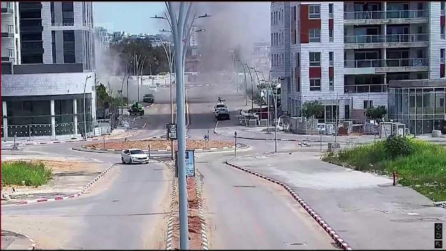 CCTV footage shows the moment of impact as an Iranian missile hits in central Israel