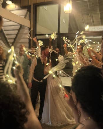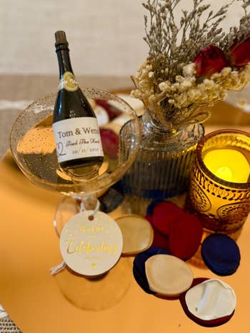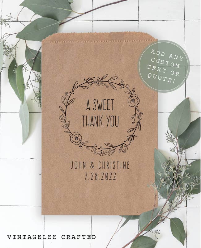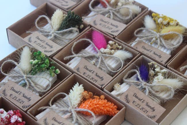 We hope you love our recommendations! While every product is independently chosen by our editors, BuzzFeed and our publishing partners may collect a share of sales or other compensation from the links on this page. You can read more about how our affiliate partnerships work in our Editorial Standards & Ethics Guide. Weddings are more fun with merch. Or snacks. Probably merch and snacks. Wedding favors often find themselves on the tail-end of wedding "to-do" lists, but they can be one of the things guests remember most about your special day. You might want a thank-you gift that stands out from the crowd (custom temporary tattoos? Why not!), or you may be looking for a classic gift that matches the elegance of your ceremony. If you're having an outdoor wedding, maybe even more practical gifts, like a blanket or sunglasses, which just might save the day when the weather is unpredictable. Planning a wedding is hard work. Here's a wedding gift from me to you — I've done the research and found wedding favors that have been real hits with reviewers, brides, grooms, and guests alike. This is a great choice if you'd like to have your favors taken care of early, because the fresh milk chocolate has a one-year shelf life! You can choose between gold or silver foil and personalize them with your names and the date of your wedding on a pretty custom label. Belle Gifts Store is a small business with nearly five thousand reviews on Etsy, so you know you can trust them with your special day. The place is a hit! Store these in a cool, dry, and dark place at 60–68 degrees F. Promising reviews: "They were a pleasure to work with and were very quick to respond. The custom chocolates looked and tasted amazing. It was a very quick turnaround. Perfect wedding favors!" —Rynelle "The best packaging I’ve ever gotten from Etsy! Packaged super well and even had two separate chocolates that said 'This one is for you.' 🥹 Such a sweet gesture! Came super fast and I loved the quality of the product as a whole!" —Stacey Brewster Get them on sale from Belle Gifts Store on Etsy for $56.94+ (originally $94.90+; available in two foil colors and in 50–300 pieces — with or without a custom box). Make your wedding the coziest dang day of your guests' year with this particularly thoughtful gift. If your outdoor wedding is during spring's unpredictable weather, at sunset as the temperature starts to chill, at a breezy beach or mountainside, or on an autumnal afternoon, these blankets are a great way to say "We've got you covered. Literally." Folks will appreciate the gesture on the day and have a gift worth keeping around after. Promising review: "My daughter's wedding was in November in Texas, so it could be cold or hot, and we didn’t take a chance. It was cold that day, and these blankets did not disappoint. They were warm, cozy, and soft wedding favors." —Rosie Davila Get a pack of 24 from Amazon for $61.20+ (available in eight colors and a variety pack). These match boxes are so pretty, I'm trying to come up with an event worthy of this party favor! Feeling like I made a big mistake getting married 13 years ago when these weren't around (maybe for our 20th). The color palette for these creates a rustic, old-school touch that is equal parts nostalgic and timeless. "The perfect match" phrase is the most sophisticated of wedding puns, if you ask me, and adds a little whimsy to a killer, cute party favor. Spark The Day is a US-based small biz specializing in custom bulk match boxes for special events. You can get custom illustrations, use pictures, or choose from a variety of aesthetically pleasing designs. Promising review: "Great customer service and customization. They delivered, and the quality is even better than expected. Five stars." —Madison Get 50 from Spark The Day on Etsy for $91.12 (available in four colors, a custom color, and up to 500 boxes). Small tea candles are the practical-meets-pretty choice you really can't beat. There's room for three unique lines on the custom topper, which is pretty open for wedding favors, which often limit choices to a specific list of phrases. The choice is yours, though I'm a sucker for the "Love on Fire" featured on the first line, the couple's names on the second, and the date on the third. White Confetti Box is a small business based in Myrtle Beach, South Carolina, that specializes in personalized modern gift boxes. Promising review: "Cannot believe how quickly these came! I ordered 200 to give out as wedding favors, and they were delivered within a few days. Exactly as pictured, and they smell good too! I was worried that the 2-ounce would be too small, but they are the perfect size, and I definitely am happy with my purchase!!" —Michelle Makowski Get a set of 10 2-ounce candles from White Confetti Box on Etsy for $25+ (available in 41 sticker colors for the lid, two or four ounces, and in larger quantities). If you'd like your guests to go home with something they'll want to keep, a mini succulent just might be your perfect pick. Not only does it make for a fun favor, it also adds to your own decorative florals. Just picture how pretty these would look on a grab-and-go table or at each guest's dinner plate. If you'd like to create a similar vibe to the image above, grab a decorative plant stake and some burlap. Promising review: "I got my plants last night, and opened them this morning to find four warm and cozy succulents ready to be planted. The heat pack that was included in the box was still warm, and since they were packaged so well, it didn't look like much shifting had happened in transit. The soil was perfectly loose, which made them easy to take out and replant, and I can't wait to see how they do!" —Alexis Russell Get a pack of 100 from Amazon for $149.99 (available in several pack sizes). These are the adorable, memorable party favors your guests are gonna be talking about every time your guests go to a (ahem, lesser) wedding. They are som