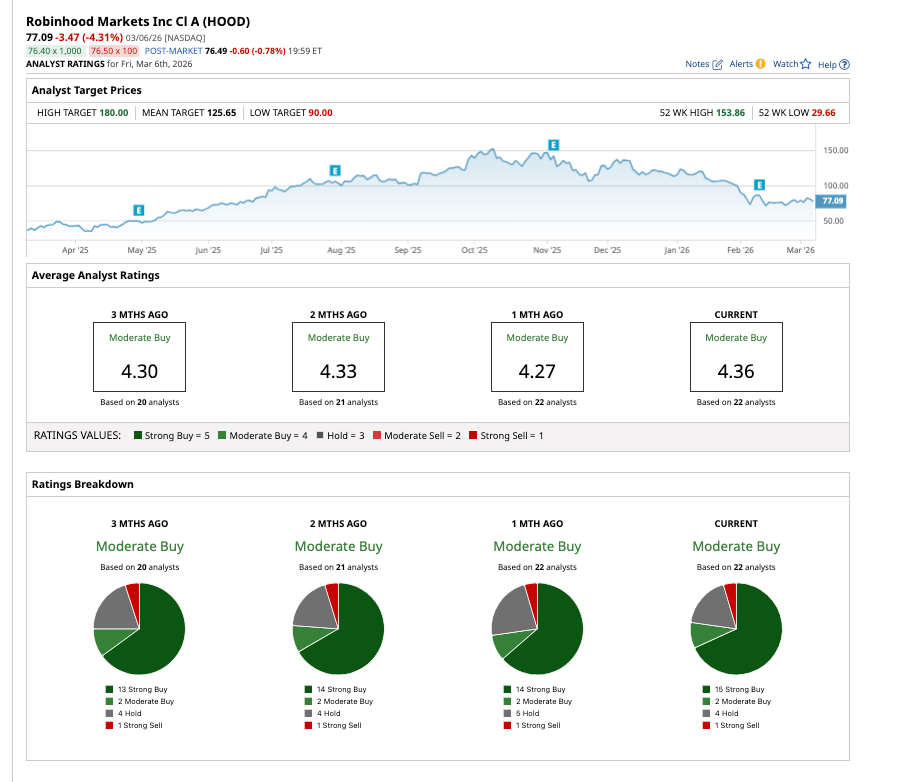 In a volatile market, savvy investors like Cathie Wood take the opportunity to accumulate shares of companies with long-term potential. As the founder and CEO of ARK Invest, Wood is known for her high-conviction strategy centered on disruptive innovation. Her fund invests in fintech, genomics, artificial intelligence (AI), and other disruptive technologies that she believes will provide exponential growth in the long run. Her latest investments, totaling roughly $19.1 million across five stocks, show that she is once again leaning into beaten-down growth stocks and emerging disruptors even in such an uncertain market. Dear Oracle Stock Fans, Mark Your Calendars for March 10 Stocks Close Higher After President Trump says Iran War is "Pretty Much" Complete As Elon Musk Aims for AGI, Should You Buy Tesla Stock Now? Get exclusive insights with the FREE Barchart Brief newsletter. Subscribe now for quick, incisive midday market analysis you won't find anywhere else. Should you follow suit? On March 5, ARK bought about 183,933 shares of Robinhood Markets (HOOD) worth roughly $15.12 million. Robinhood now holds 4.3% weightage in the ARK Blockchain & Fintech Innovation ETF (ARKF) and 4.8% in the ARK Next Generation Internet ETF (ARKW). Valued at $69.4 billion, Robinhood is an online financial services company that allows customers to buy and sell stocks, ETFs, options, and cryptocurrencies via its mobile app and website. The company has been seeking to diversify its offerings beyond meme-stock trading, including options, retirement accounts, credit cards, and even overseas markets. ARK appears to be betting that Robinhood can evolve into a full-scale financial ecosystem. However, the stock remains sensitive to trading volumes and crypto activity, making it a risky bet for investors. Overall, Robinhood gets a “Moderate Buy” rating on Wall Street. While HOOD stock is down 33% so far this year, analysts see potential upside of 63% from current levels if it hits its average price target of $125.65. Plus, the high price target of $180 implies the stock could surge by as much as 133.5% over the next year. Among the 22 analysts covering the company, 15 give it a “Strong Buy” rating, two recommend a “Moderate Buy,” four say it is a “Hold,” and one says it is a “Strong Sell.” ARK also added approximately 58,048 shares of DraftKings (DKNG) valued at around $1.48 million. DraftKings now holds 1.9% weightage in the ARK Blockchain & Fintech Innovation ETF and 1.05% in the ARK Next Generation Internet ETF. The online sports betting leader continues to benefit from state-by-state legalization across the U.S., expanding its total addressable market. With steady revenue growth, DraftKings has been focusing on improving profitability through disciplined marketing spending and stronger customer retention metrics. In 2025, the company reported positive net income for the first time, driven by a 27% increase in revenue. While competition in the betting space remains intense, ARK’s buy suggests confidence in the long-term digital entertainment space. Overall, DraftKings gets a “Strong Buy” rating on Wall Street. While DKNG stock is down 29.4% so far this year, analysts see potential upside of 45% from current levels if it hits its average price target of $36.41. Plus, the high price target of $53 implies the stock could surge by as much as 110.7% over the next year. Among the 34 analysts covering the company, 25 give it a “Strong Buy” rating, three recommend a “Moderate Buy,” five say it is a “Hold,” and one says it is a “Strong Sell.” ARK’s purchase of 612,501 shares of Cerus Corp. (CERS), worth about $1.37 million, highlights Wood’s continued interest in healthcare innovation. Cerus now holds 1.2% weightage in the ARK Genomic Revolution ETF (ARKG) and 0.30% in the ARK Innovation ETF (ARKK). Valued at $370 million, Cerus is a small-cap healthcare innovation company specializing in pathogen reduction technology for blood safety, a market with high global demand and long-term regulatory benefits. Its main product, the INTERCEPT Blood System, is used by blood centers and hospitals to reduce harmful viruses, bacteria, and other pathogens in blood components like platelets and plasma before transfusion, helping lower the risk of infections from blood transfusions. At the start of 2025, the company proudly announced that “20 million transfusible doses of INTERCEPT-treated blood components have been made available to patients.” While Cerus fits ARK’s pattern of investing early in companies with disruptive medical technologies, it is still a risky penny stock. Overall, Cerus stock gets a “Moderate Buy” rating on Wall Street. While CERS stock is down 2.03% so far this year, analysts see potential upside of 159% from current levels if it hits its average and high price target of $5.00. Among the four analysts covering the company, two give it a “Strong Buy” rating and two say it is a “Hold.” ARK also bought roughly 100,264 shares of Compass Pathways (CMPS), valued at about $706,861. Compass holds 1.88% in the ARK Genomic Revolution ETF. Valued at $747.4 million, Compass Pathways focuses on creating innovative mental health treatments, most notably COMP360, an investigational psilocybin-based therapy targeted at assisting people with treatment-resistant depression and PTSD (post-traumatic stress disorder). The company is currently conducting many late-stage clinical trials to assess COMP360 efficacy. Mental health remains a massive unmet need globally, and breakthrough therapies could unlock substantial long-term value if clinical trials succeed and regulatory approvals follow. Overall, Compass stock gets a “Strong Buy” rating on Wall Street. While CMPS stock is up just 0.46% so far this year, analysts see potential upside of 233% from current levels if it hits its average price target of $21.92. Plus, the high price target of $70 implies the stock could surge 