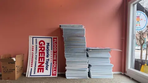 Her name isn't on the ballot. She no longer serves in Congress. But Marjorie Taylor Greene is looming large in the minds of north-west Georgia voters as they prepare to choose who to replace her with in Washington. Known for her hard-line Christian conservative views, brash committee appearances, and embrace of multiple conspiracy theories, Greene quickly became one of the most prominent Republican members of Congress after winning her seat in 2020. "She did some stuff off the wall," said Justin Leonard, 28-year-old firefighter in Georgia's 14th congressional district, who voted for Greene twice. "Kind of making conservatives look a little right-wing and a little like nut jobs. But other than that, I think she did her job." But when Greene broke her unwavering support for US President Donald Trump late last year, the pair's rift descended into a very public feud that ultimately led to her decision to quit Congress in January. "She loved her country, she loved Christ, she believed in values," Leonard said. "Unfortunately, she kind of went off the rails a little." On Tuesday, voters in Leonard's area, a Republican stronghold, will decide who will take Greene's place on Capitol Hill in a special election. Trump himself has bequeathed his "complete and total endorsement" to a Republican former district attorney named Clay Fuller. But Fuller is just one of 17 candidates in a crowded field that features both Democrats and Republicans. And Greene's voters share her resistance to being told what to do, even by a president they admire. Greene's feud with the president began over Trump's initial opposition to releasing the Epstein files - something Greene had vocally campaigned for. She called Trump's movement "a lie", while Trump called Greene "a traitor". In November, Greene announced her resignation from the House, and has since become one of the most vocal critics of Trump - who ultimately signed a law that ordered the justice department to release all of its Epstein files. Greene is especially vocal regarding Trump's foreign policy, which she says betrays his "America First" agenda. "We campaigned on NO MORE FOREIGN WARS OR REGIME CHANGE!!! Liars every single one of them!" she posted on X on Sunday. Some voters told the BBC they hoped that backing Fuller would avoid another Greene-like schism with the president. "I've seen the Clay Fuller commercials - Trump wants him to win it," said Jeremy Ashley, a 52-year-old Republican voter. Ashley said the president's endorsement helped him choose a candidate from the crowded field. If no candidate gets over 50% of the vote on Tuesday, a run-off between the top-two finishers, regardless of party, will occur on 7 April. The winner will serve the last few months of Greene's term, and must then campaign again to win the scheduled midterm election in November. Others say Trump's endorsement is not the only thing that matters in this race. Though he "loved Trump to death" and voted for him three times, Leonard, the firefighter, said he was going with another Republican candidate - a risk management consultant named Beau Brown - because he wanted "someone that has professionalism." Nicholas Fennell, 42, supported Greene for years, but "not after how she's been kind of acting crazy, to me," he said. "I feel like she flipped the script when her and Trump didn't get along." Fennell said Trump's endorsement was a factor, but not the only one, in determining his vote. "I take his opinion into consideration, I guess, but it's not like, the final word," he said. Instead, Fennell said he planned to vote for State Senator Colton Moore โ a Republican who did not receive Trump's endorsement, but perhaps embodies the president's pugnacious persona more than any of his other conservative rivals. In 2024, Moore was banned from the floor of the Georgia state house after he denounced the chamber's late Republican speaker, David Ralston, as "corrupt" during a memorial service. The next year, Moore was arrested after trying to enter the chamber for the state governor's speech despite the ban. Moore's congressional campaign website displays his own mugshot from that incident next to Trump's now-famous mugshot from 2023, when the president was indicted on charges he led a conspiracy to overturn Georgia's 2020 election results. (Trump pleaded not guilty, and a judge dismissed the case last year after it fell apart due to prosecutorial errors.) In the state house, Moore has developed a reputation as one of Georgia's most conservative lawmakers - who, much like Greene, is unafraid to publicly challenge the Republican leadership. It is not, however, a comparison he wants to dwell on. "Please understand, Marjorie is gone," Moore told the BBC in a brief phone interview last week. "This is a new election for a new day." "One thing that's very different between Marjorie and I is I'm not a quitter, I don't just quit," he said. Moore believes his staunchly conservative, unabashedly controversial brand could prevail in a competitive race. "We're bustin' tail all we can," he said. "We've got a big problem ahead of us: all the swamp money is being spent against us. We've got the volunteers and the grassroots. Our opponents have the swamp money." His bluntness is something that Benito Rubino, a 21-year-old volunteer with the campaign, likes. "Colton has that same appeal as Marjorie," he said. "What appealed to me is that she's very open-minded. She called out corruption," Benito said. "Something about her really spoke to the people." But her quitting has left the district vulnerable, he said. "So far nobody's happy with Marjorie, with the fact that she quit so early," he said of local Republicans. "It's making it an easier chance Democrats can possibly win this." That is certainly something Democrats are hoping may happen, despite the odds. "What makes it different is, Marjorie is not in the race," said Shawn Harris, a local farmer and retired brigadier general. He unsuccessfully challenge