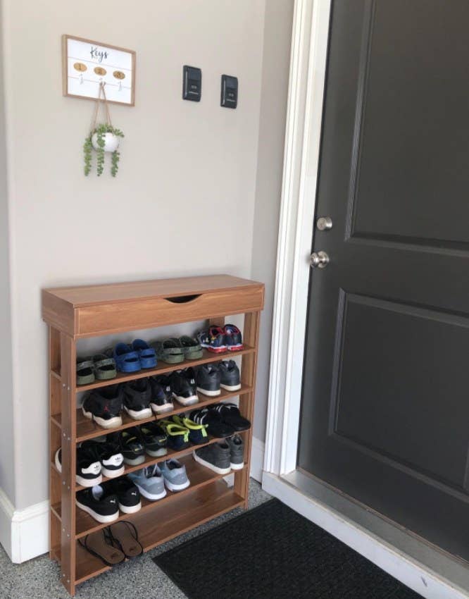 We hope you love our recommendations! While every product is independently chosen by our editors, BuzzFeed and our publishing partners may collect a share of sales or other compensation from the links on this page. You can read more about how our affiliate partnerships work in our Editorial Standards & Ethics Guide. These are the things that will make organizing chic and, dare I say, FUN. It can hold around 20 pairs of shoes in most sizes (slightly fewer if they are size 10 or larger). Promising review: "I just love this stand; it is very sturdy and easy to put together. I would buy it again." —hEATHER Get it from Amazon for $59.99+ (available in three colors). Promising review: "I was looking around for a bookshelf for my under-the-stairs reading nook and I came across this one. It was so easy to assemble, it took no time at all. I love the look of it, and it's very sturdy to hold all my books and decorations." —Tia Get it from Amazon for $143.99+ (available in five colors). Promising review: "This kitchen cart is exactly what I was looking for: good storage and added workspace while still looking nice and easily tucking out of the way. It has clean classic lines, sturdy construction, and serious versatility. I feel it's a real steal for the price and I know I'll get a lot of use out of it. Overall, it's a great piece for a great price. I'm a happy customer!" —J.Crandall Get it from Amazon for $280.99+ (available in four colors). Promising review: "Absolutely love this cabinet, I assembled this on my own (50-year-old mom aka nanna). It was very easy, only took me a couple of hours. It has a whole lot more storage than I had anticipated, very pleased!!!!! If you're trying to decide, trust me, you need to choose this one, you won't be sorry!!" —Karen Keith Get it from Amazon for $56.99+ (available in three sizes and 11 colors/finishes). Promising review: "Metal is heavy duty. Cool industrial black. The shelves are super nice and don’t scuff or dent easily! Fairly easy to put together! Super sturdy! Gives the perfect look I was going for! Don’t hesitate to purchase, the quality is there!! I would rebuy in a heartbeat! I’m so glad I did!" —Just a Person Get it from Amazon for $99.99+ (apply the coupon on the product landing page for 13% off). Promising review: "Crystal clear! This organizer helped my daughter organize her makeup. Nicely made. Sturdy and unscratchable, so far. Easy to clean. We recommend this product!" —J. Bianco Jones Get it from Amazon for $15.99+ (available in four sizes). Promising review: "Great way to get a little extra storage space without taking up more space. I have a set of these on my bathroom door for extra toothbrushes, cotton swabs, shampoo, etc. I have another on the inside of my basement door with extra cleaning supplies. They hold a good amount of items/weight. The only issue I have is that they rub at the top of the doorframe. The door and frame are pretty tight, so anything placed over it would do the same. Definitely worth the quality and price." —amazon customer Get it from Amazon for $15.97+ (available in two colors). Promising review: "Great product for a great price. Very sturdy, but lightweight and small. Under my bathroom sink is *very* small, and the metal frame is thin enough that it doesn't take up much space, and of course it allows me to utilize the empty vertical space instead of shoving things all the way to the back wall." —Calvin Laszakovits Get it from Amazon for $24.87 (available in three colors). Promising review: "Bought this to store the many fleece throws we have and all 6 fit perfectly. The grandchildren like to take all the throws out and sit in the basket too. It has held up well and still looks great!" —mtnmama Get it from Target for $15+ (available in three sizes and two colors). Promising review: "Absolutely love these! I have bought them three times already on Amazon. I have been trying to organize my kitchen utensils. I have minimal counter space and ceramic tile walls behind my counter. I am unable to risk drilling into the tile or to the underside of my cabinets. These sticky hooks are perfect!! They adhere to the tile AND to the wood laminate of my upper cabinets. They also are great on the painted wall and the bumpy side of my refrigerator. I started using these around March of 2020 and I have not had a single one fall down. I have various sizes of kitchen utensils and items hanging from them." —Tigerakp Get a pack of 16 from Amazon for $11.99 (also available in a pack of 28). Promising review: "I am chronically cold and have a bunch of very nice knit cardigans. I usually end up leaving them laying over chair backs or recliners and cluttering things up, so I bought these to have a good place to hang them. The thick wood prevents stretching damage from the weight of the sweaters, and not using a hook prevents damage and holes in the knit. Definitely worth the upgrade." —Lynn M Get a set of two from Amazon for $17.99 (available in two finishes). Promising review: "I work from home in a small apartment, and this really made my setup work the way I want it to. I need to use all six plugs, plus I like to keep my phone and Mi-Fi charging while working too. This was the perfect thing for me to get everything plugged in and essentially retrofitted into a built-in apartment wall desk setup that was intended for the large desktop towers of the late '90s. I’m ordering a second one in hopes it transforms another part of my weird floor plan. Bonus: The USB ports seem to fast-charge my iPhone XS Max. I can go from dead to fully charged in about 90 minutes." —Moose Get it from Amazon for $24.99+ (available in versions with and without USB-C and three colors). Promising review: "Will be ordering more! These drawers are perfect for our newborn’s clothing and accessories. The drawers are super sturdy and well-made. The whole shelf is great quality. The nice, slim design makes these easy to tuck anywhere! T