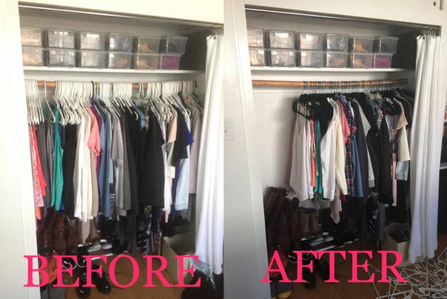 We hope you love our recommendations! While every product is independently chosen by our editors, BuzzFeed and our publishing partners may collect a share of sales or other compensation from the links on this page. You can read more about how our affiliate partnerships work in our Editorial Standards & Ethics Guide. Featuring: a pack of slim velvet hangers, so you can get all those clothes off the floor. Promising review: "The difference in my closet because of the hangers alone is striking. I can finally shift clothes to the side to actually see what I have. While some may think that saving their money and dealing with a tight closet is worth it, I am completely sold on making the change. So happy I pulled the trigger. I've purchased 100 more just now so that I can do the same for my boyfriend's closet." —ChristineSD Get a 30-pack from Amazon for $15.73+ (also available in 50- and 100-packs and in seven colors). Included are six blank labels to write on your own and six pre-written labels (Cotton Balls, Cotton Swabs, Cotton Pads, Floss Picks, Hair Ties, and Bath Salt). Promising review: "These are actually cuter than I expected! They are a tad smaller than some I've seen, but they actually looked great and can hold plenty of cotton swabs and cotton balls in the spare bathrooms. I have mine on a serving tray with a candle and vase, and they look great without taking up too much space!" —tara savage Get a set of four jars from Amazon for $9.98 (also available in a set of two and three). Here's what shopping aficionado and BuzzFeed Shopping editor Maitland Quitmeyer has to say: "I bought a pack of these and love dusting with them! All the dust sticks right on, so you don't end up breathing in all the dust you just tried removing. It's great for baseboards, too!" Promising review: "I rarely review products, but this little sponge literally changed my life! It picks up EVERYthing in one swipe! Hard water marks on your bathroom mirror, no problem! Hair clippings are on your sink and counter. One swipe, and they are gone! Dusty blinds? Swoosh, swoosh, swipe! And ala-presto ka-bam, like magic, they are perfect and dust-free! I just need one of these for my floors! I love, love, love how the sponge picks up everything and with a little running water, all the dust, hair, muck and guck just rinsed away! This will not disappoint! Thank you!" —DayDreamer Get a pack of four from Amazon for $9.99 (available in six color packs). It works on most carpets, linens, clothing, and upholstery fabrics. Promising reviews: "I cannot eat a meal let alone cook one without a food testament on my shirt. This was the only thing I noticed that would really get all of it out!" —Birdie in OKLA "These are small and fit perfectly in your diaper bag. If you have a partner who is always a mess (like my husband who LOVES to pick the messiest sandwich to eat while driving, without fail) this will literally save their shirt and your day! 😂 I love that this is non-toxic and that you can literally watch the stains go away in front of your eyes. I’ve even used this on dried stains and it works wonders." —Cassidy Gregorski Get it from Amazon for $7.97+ (available in three sizes and multipacks). Promising review: "These tablets added to the cleaning cycle of my front load machine are far more effective than hot water alone. They effectively clean and reduce/eliminate mildew odors, which build no matter how much I air out the machine after doing laundry. Just toss one into the basket when the cleaning cycle alert comes on, and your washing machine will love you for it." —Tami T. Get a pack of five from Amazon for $11.24. Promising review: "Okay, admittedly, I am a bit of an organization freak. I purchased two of these organizers (yes, you do need two PER drawer) to organize my underwear drawer. I agree that $20 seems like a lot to pay for a few pieces of plastic to organize a drawer no one else really sees, but...It's totally worth it. The gratification I got from being able to see exactly what I have, neatly organized, easy to find...Wow. I definitely recommend this product. And the actual dividers are well made and super easy to assemble. As a previous reviewer said, the number of times you will look at your drawer and be totally satisfied makes the price well worth it." —Brigette Get a pack of two from Amazon for $15.18. Promising review: "First of all, when you see 'jumbo' in the title, you better believe these things are JUMBO! These bags of limitless storage can hold just about anything fabric that you need squishing down into a manageable block. I've used these for blankets, clothes, and precious keepsakes and I feel secure in the knowledge that they are all well-protected. The plastic is thick but not stiff, so you know it's good quality." —Kimball Household Get a pack of six jumbo bags from Amazon for $26.99 (available in four sizes and assorted multipacks). Promising review: "The best day of my life was the day I adopted my cat. The second best day of my life was when I discovered this product. I never write reviews, but for the first time in my life I felt compelled to write one to share how fantastic this product is. It’s the age-old story: girl adopts cat, cat sheds like a maniac, everything girl owns is now covered in cat hair, girl tries everything but is unsuccessful, blah blah blah. But this pet hair remover/lint roller contains some type of wizardry that has seriously changed the game. *Chefs kiss* to the creators of this product. Y’all are doing G-d’s work." —SB Get it from Amazon for $24.99 (available in three colors). Here's what BuzzFeed Shopping editor Sally Elshorafa has to say about this handy organization unit: "This product SAVED MY SHOES! I have an awkward set of built-in shelves in my closet, and it was the only place I wanted to put my shoes. As you can see from the before pic (above), it was a big mess; my shoes were piled on top of each other and getting really dirty. Tra