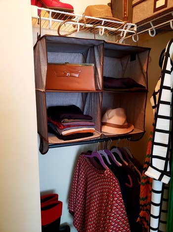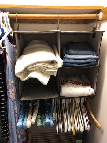 We hope you love our recommendations! While every product is independently chosen by our editors, BuzzFeed and our publishing partners may collect a share of sales or other compensation from the links on this page. You can read more about how our affiliate partnerships work in our Editorial Standards & Ethics Guide. For anyone tired of moving the same pile of stuff from one surface to another. These storage finds will help you tackle clutter head-on, giving everything from shoes to water bottles to pantry staples a proper place to live — think makeup organizers, storage bins, and more. Because sometimes the fastest way to make a space feel calmer is simply to stop things from stacking up in the first place. Promising review: "These storage containers are my favorite brand. The plastic withstands the abuse of everyday life and protects against the elements and calamity. The latches make them easy to transport and keep the lid on when you stack them. The manufacturer color-codes the latches and lids, so if you have multiple sizes, it's easy to sort them. And they have a nice, tidy look once everything is stored. And the clear bottom sections make it easy to see what's inside. That makes it easy to stack and organize material in various environments. And when they latch closed, they stay closed." —Angel A. Get it from Amazon for $54.99+ (available in four sizes and eight quantities). Promising review: "My son had recently turned the house into a death trap with his Legos all over the floors. Walking anywhere barefoot became impossible because you would inevitably step on one and get it lodged in your foot. It got to the point where I was afraid to go anywhere at night because of the impending doom. Then we found this organizer, and since then, our lives have been saved. He can quickly and easily store all of his Legos in one place. We can now get all of them cleaned up in minutes and know that we can walk around the house in peace once again." —Chris Get it from Amazon for $49.99 (available in four colors). Promising review: "I’m basically obsessed with this thing already. I just got it today, so I can’t speak to long-term, but it’s amazing how much space this frees up. I have a 1940s house, therefore 1940s tiny closets, and I need to get creative in my space organization. This thing was just what I needed to store sweaters on top and hang all other tops on the bottom. You can’t see in the photo, but my closet has some space on both sides that’s just half-filled now and used to be filled to the brim, barely able to move the hangers. This storage solution makes displaying the sweaters nicer than in drawers of my dresser or hanging. It honestly appears very sturdy and quality to me. The fabric is thick, and the hooks and bar are both metal. All in all, one of my favorite purchases from Amazon." —BobbyL Get it from Amazon for $23.99+ (available in four colors and two sizes). Promising review: "I absolutely love this acrylic makeup organizer! The quality is much better than I expected, thick, sturdy acrylic that doesn’t feel flimsy at all. The drawers slide smoothly and feel secure, and the clear design makes it so easy to see everything without digging around. The mix of small and wide drawers is perfect. I’m able to organize lip gloss, palettes, powders, blushes, bronzers, etc. It looks very clean and polished on my vanity and instantly made my space feel more organized and put together. Highly recommend if you’re looking to declutter your makeup area! ✨" —Alexandria Renee Irardy Get it from Amazon for $34.99+ (available in six colors and two styles). Promising review: "Yes...I have too many clothes. I LOVE my leggings. These saved me soooo much room! Now I have much more space, AND I can see them all easier." —Larry Seymour Get a pack of two from Amazon for $12.99+ (available in eight colors). Promising review: "Great storage cubes for my nursery shelves. I can see what’s in them easily. Sturdy and cute." —Morgan "Been using these for almost two years now! They’re very durable and stable. Our shelves are not very deep, so we needed an option that was shallower. Great product!" —isabella Get it from Amazon for $22.09+ (available in four colors and five sizes). Promising review: "I absolutely LOVE these! They fit WAY more than they say they do. I fit my whole linen closet in three bags. And all five of my family's jackets and sweaters in three bags. Regular bags or boxes would have taken up way more space. I wish I had bought these years ago." —Ashley Get a set of six jumbo bags from Amazon for $19.99+ (available in small, medium, large, and jumbo sizes). Promising review: "Love this basket! It’s roomy, sturdy, and looks great in my living room. Holds multiple blankets or pillows, but also works perfectly as a laundry hamper or toy chest. The cotton rope is thick yet soft, and the neutral design fits anywhere. It arrives folded, but shapes up quickly once filled. Pretty + practical = perfect buy!" —Larissa Get it from Amazon for $28.99+ (available in 13 colors). Promising review: "These are great for closet organization. My husband uses them for his hats and hoodies. He used to just pile his hoodies in a drawer; now he actually hangs them up so they are more visible and easy to grab. I use them for my tanks and camis. So versatile and great quality. Items stay on the hook easily, and they increase storage capacity in the closet." —isk8er Get it from Amazon for $6.41+ (available in three finishes and three quantities). Promising review: "I have a small kitchen, and these shelves have created a ton of space for my apples, potatoes, and other fresh produce that would otherwise have been taking up valuable space on my countertop or in my refrigerator. I was able to store about five pounds of apples, five pounds of potatoes, and seven bananas on one shelf, and there was not even the slightest sign of movement. The magnet is very strong, and the shelf ca