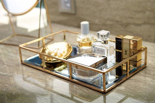 We hope you love our recommendations! While every product is independently chosen by our editors, BuzzFeed and our publishing partners may collect a share of sales or other compensation from the links on this page. You can read more about how our affiliate partnerships work in our Editorial Standards & Ethics Guide. You don’t need a full renovation to make your space feel brand new. Just a few really stylish upgrades, like this v cute strawberry vase and squiggly mirror, will do. Promising review: "These have to be the coolest things I have ever purchased. I have them in an empty wine bottle. I will be buying many more to cover the entire bottle in wax." —Bre Promising review: "This is a lovely three-piece candlestick set. The individual pieces appear nicely crafted and finished. They are a larger scale than I anticipated, but look lovely together as a collection on a table top." —Ashley Get a set of three from Wayfair for $59.99 (originally $69.99). Promising review: "Sparkling and beautiful. I bought these to hang in my kitchen window, and they are perfect. The sun hits the crystals, and it creates a beautiful shine and radiance. I've received lots of compliments. Nice buy!" —Alicia Burciaga Get it from Amazon for $13.76+ (available in gold or silver and in seven styles). Dream Big Printables is a small business that specializes in wall art and decor. Promising review: "Absolutely love these prints. They are more beautiful in person and of great quality. They are sturdy and not just a piece of thin paper. I will definitely buy from this seller again." —Sherry Wagner Get it from Amazon for $19.95+ (available in two sizes and 12 print options). Psst — you can snag five 8 x 10 frames to fit them on Amazon! Check out a TikTok of the paper bag vase in action. Promising review: "This vase was a lot cuter than I expected. Has good weight to it and looks exactly like a crinkled bag. Packaged and shipped super securely, a great buy." —Vivian Promising review: "I'm extremely pleased with this bunch of peonies. They come as a spray on one branch, so I cut each stem off and arranged them individually. The resulting arrangement is lush and beautiful. There are enough leaves and other pieces that make it more than just the flowers and allow for some spiky bits to pop out. You will not be disappointed!" —c2believe Get them from Amazon for $16.99 (available in 28 colors). If these aren't quite your style, Amazon has lots of wall decal options available, from fruit like peaches or oranges to abstract lines in black or gold to florals like daisies or leaves — you're bound to find something you'll like! Promising review: "I love these. I had this bare wall in my apartment that I felt needed something else, and these were perfect. They don’t feel super sticky (we will see how they hold up), but I like that right now because they don’t take the paint off, since I’m renting! I love them. For this tiny wall, one sheet was enough!" —Makayla Hawkes Get it from Amazon for $9.99 (available in six styles). Promising review: "I was so pleasantly surprised when I received this item. I originally bought two, liked it so much, I bought two more. The tray is sturdy, and a generous size. The gold tone is nice and shiny and doesn't look cheap at all. The bottom is a very clear, good-quality mirror. The bottom of the tray is even lined with felt, so it doesn't scratch the surface it's on. I have quite the perfume and fragrance collection, and it held more than a dozen perfumes on one tray!" —Laura Salvesen Get it on Amazon for $22.49+ (available in three colors). Promising review: "Was looking for a cute tray for my perfumes and body mists that would fit on top of a tall Ikea Alex drawer… super cute wavy design and good quality" —Hannah Argame Get it from Amazon for $21.99+ (available in two finishes). Promising review: "Really adorable shelf. Great quality. Looks great in my entryway. Very happy with it!" —Jill Get it from Wayfair for $119.99 (originally $189). Feel free to also drape it over a chair or a couch for an added cozy touch! Promising review: "My parents went to Europe and sat outside on furs like these, and now they do the same at home. They live in the mountains in Utah. They put these on their metal patio chairs and then cover themselves with a blanket outside in the winter. The faux furs keep your backside insulated, and then, topped with the blanket, they are able to have a cocktail hour(s) on the deck all year long! It’s honestly pretty sweet, and the dog gets her own to lie on when she’s outside, too." —Amazon Customer Get it from Amazon for $11.69+ (available in six sizes and 12 colors). Several reviewers note that it comes with a protective film over the mirror itself (that helps prevent scratching), so be sure to peel that off when you get it! Promising review: "Such a great quality and aesthetic mirror! I used it for my Ugc videos/pictures but eventually just let it be on my counter. It adds such a cute touch to my space!!" —Matilda Loke Please note that these are sold per panel and not in a set of two. Get a closer look at these in this TikTok from @happilyinspired. Promising review: "Gorgeous, gorgeous, gorgeous!!! I did a lot of homework on finding the perfect curtains for our new home. I needed a lot of them, something pretty, full, and good insulation. It could get very expensive. These were more than I could have wanted, and at such a great price...I ended up getting the longer ones because they cost less (I needed 12 panels). As a result of longer ones, they are fuller on the bottom, look so lovely, and I get all the compliments. My mom is a designer, and I grew up being particular about fabric and how things are made. These are well-constructed and have gorgeous lining, lots of detail put into these, thank you!!" —Mrs Get a panel from Amazon for $36.99+ (available in 31 colors and 10 sizes). Natural Inspired Finds is a woman-owned small business b