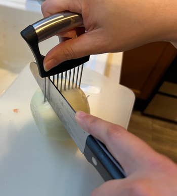 We hope you love our recommendations! While every product is independently chosen by our editors, BuzzFeed and our publishing partners may collect a share of sales or other compensation from the links on this page. You can read more about how our affiliate partnerships work in our Editorial Standards & Ethics Guide. Including an ice cube tray made *just* for big water bottles like Stanleys, an onion holder for nervous chefs, and the greatest sponge known to mankind. This tray is designed to make cubes that will fit in 30-oz. and 40-oz. tumblers. Promising review: "I use these in my BruMate and Meoky cups, and they fit perfectly. I always struggle with getting my straw through the ice and in the middle so the lid will close. These ice cubes stay on the edge of the cup and allow plenty of room for the straw." —sarah schultz Get it from Amazon for $14.99+ (available in two sizes and three colors). Hustle & Sew is a small shop based in Saint Helens, Oregon. Promising review: "LOVE these splash catchers! They save me from having to chase the puddles that form around the base of our faucet before they start creeping over the counter. So reasonably priced, made well with neatly finished edges, and packaged with gift-ready care." —Alina Get it from Hustle & Sew on Etsy for $13.50+ (available in four sizes and six colors). Promising review: "I’ve used this on different fruits and veggies and love it! I have a mandolin slicer and a food processor that slices, but it is easier just to use this tool. Nice and even slices of tomatoes and onions every time!" —Bekkster Promising review: "The wood is really super nice, smooth, and clean. It sticks great to the pan, and the silicone rings add great shock absorption, so it doesn't make a lot of noise when I send down my heavy-ass 13-some-inch skillet! It cleans off easily; I've only used it a handful of times, but it still looks brand new! A little pricey, but it's a premium kitchen thing. I recommend don't settle for something cheaper." —K. Lujan Promising review: "Easy to use, easy to clean. I love the small size. With a small household, it’s all I need. Have used it several times for hard-boiled eggs, and they have been perfect every time. I have never been too keen on specialty appliances, but this one is worth it." —brownnc Get it from our Tasty collection on Amazon for $19.99 (available in three colors). Promising review: "In a family of six, there are always SOME who don't like what everyone else is eating. This is a pan where making three different kinds of lasagna doesn't require much, if any, more effort than making a single lasagna with the same dimensions. Takes the same amount of time to layer the noodles and the same amount of time to build the things...but you have three different builds to satisfy those darned picky kids. Or hey, go adult gourmet in a way that Olive Garden cannot. What's fun with this pan is that it's not just lasagna. I tried making bread with it to good effect. Yeah, the loaves looked a little weird, but I DON'T CARE. I did it, and that's all. It gives me what I prize most in cooking gear...versatility. Easy to clean, certainly...and nonstick, though that requires a little care (use wood, not metal utensils). With proper care and feeding, these are made to last pretty much forever. I love it." —J. Tant Promising review: "This product really works! We were dealing with a foul stench coming from our disposal for some time. We tried boiling water, vinegar, etc. This stuff sniffed out the smell real quick and deodorized it as well." —James Tiberius Kirk Get a pack (good for four uses) from Amazon for $3.96. Promising review: "I recently bought this for storage, and it’s been a game-changer. It’s a sturdy and well-designed organizer that fits perfectly with my Stanley tumblers, keeping them neatly stored and easy to access. The material feels durable, and the compact size doesn’t take up too much space, making it ideal for my kitchen. It helps keep things tidy and prevents my cups from tipping over or getting scratched. Overall, a practical and functional storage solution that I’m really happy with! —Megan Davis Get it from Amazon for $16.99+ (available in two colors). Promising review: "Nice and thin. You'll find so many more uses for these around the house than just getting stuff off the underside of cookware! I had hard, scaly water deposits on the glass surrounding our powder room faucet (one of those fancy, highfalutin modern-looking things). I've tried everything for 4 years to get this stuff off. One day I thought, maybe I'll try my sponges. Took it all off super easily!!!! Faucet looks like new. My only rec is to spot-test your item first before using it because it will scratch certain surfaces if you scrub too aggressively (for example, it gets the burned-on, weird stuff off of the bottom of my fave Our Place pan, but I rubbed too hard in one spot and it took the color right off lol)." —Hoarder Get an eight-pack from Amazon for $7.99+ (available in two sponge thicknesses). Promising review: "Easy to use and several different options for cutting your vegetables as needed. Sharp blades and it’s a plus to hold everything you slice or dice in its container. Exactly what I needed. Very well made and easy to use. My go-to in my kitchen for my vegetables." —Giselle Promising review: "This clip is amazing. No more towels falling on the floor. It was becoming a routine thing since my cat thinks it's fun to pull the kitchen towels off the oven. Not now, bad kitty! Great product...wish I had bought one sooner!" —Joanna Get a three-pack from Amazon for $11.79. Promising review: "This scale with a built-in cup is the best thing for my baking tools. No more whipping out 1,000,000 cups. Also, [rather than] always trying to figure out grams or cups, now I just press a button, and it tells me I love this." —Corin lonigro Get it from Amazon for $24.98 (available in three colors). Promising review: