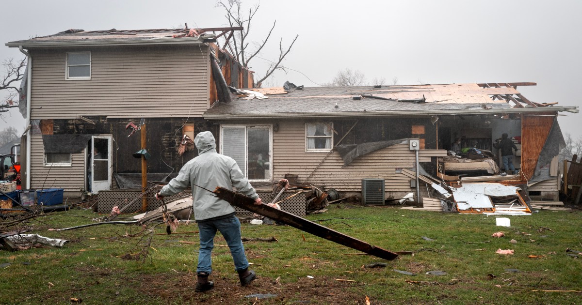‘Supercell’ thunderstorms hit Illinois and Indiana, after eight people killed by tornadoes in US Midwest last week. Share Save Two people have been killed in tornadoes in the Midwest region of the United States amid a spate of extreme weather, according to authorities. At least four tornadoes touched down as intense “supercell” thunderstorms swept across northern Illinois and northwestern Indiana on Wednesday, according to the National Weather Service (NWS). “Supercells” are the rarest form of thunderstorms. They are known to be particularly devastating for their prolonged durations and their “high propensity to produce severe weather, including damaging winds, very large hail, and sometimes weak to violent tornadoes”, according to the NWS. In Indiana, local officials said an elderly couple had been killed when a tornado hit their home in the town of Lake Village. Several residents in the wider Newton County were rescued by emergency responders, as the storm knocked down at least 70 utility poles and left some roads impassable. In a video posted to social media late Tuesday, Sheriff Shannon Cothran warned people about trying to access the damaged areas. “Please do not come here. Do not try to help right now,” Cothran said, standing in front of the couple’s destroyed home. Parts of Illinois, Indiana, Kentucky and Ohio remained on tornado watch into the afternoon. About 40km (25 miles) east of Lake Village, another tornado touched down in Kankakee County, Illinois, late Tuesday. Officials said the tornado caused extensive damage as it travelled across the suburb of Aroma Park. At least nine people were injured, but no deaths were reported, according to local officials. Cassidy Sinwelski, 23, told The Associated Press that the storm hit Kankakee harder than expected. She and her husband took shelter in their home’s bathroom. “We went into the bathroom, got a piece of plywood, and within minutes, I closed my eyes, the lights flickered, and we just — there was nothing,” Sinwelski said. Then came loud rumbles and the sound of shattering glass. “I just kept crying out for God, because I didn’t know what else to do,” she said. The latest round of extreme weather comes after eight people were killed by tornadoes in the US states of Michigan and Oklahoma last week.
