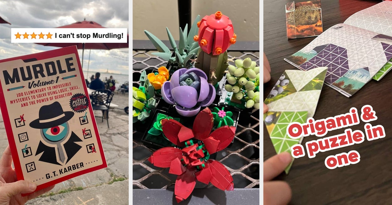 We hope you love our recommendations! While every product is independently chosen by our editors, BuzzFeed and our publishing partners may collect a share of sales or other compensation from the links on this page. You can read more about how our affiliate partnerships work in our Editorial Standards & Ethics Guide. Take a breath and let your anxious hands crochet a super cute narwhal while you give your brain a break. Foldology is a small business that specializes in unique puzzles. Promising review: "So much fun! This activity has provided hours of enjoyment. They start off easy and with each you learn a new fold and they progressively get harder. Definitely a worthwhile purchase for someone who likes puzzles." —Amazon Customer Psst — Coco Wyo has a *ton* of other cozy stress relief coloring books with different themes in their Amazon storefront! Another psst — you can pick up a cult-fave colored pencil set on Amazon for $12.34! Promising review: "I've always loved coloring, but it had been many years since I last did it. I bought this book to unwind and relax while painting, and it was a great choice! It offers a variety of scenes, making the experience even more engaging. It allows you to explore creativity and experiment with different color combinations from your marker set. I highly recommend it for anyone looking for a calming and artistic escape!" —Ally Check out a TikTok of the reverse coloring book in action. Promising review: "Kendra Norton’s beautiful art books have changed my world! My whole life, I thought I was not creative and had zero artistic ability. Now, this has become my favorite form of artistic expression. I turn on music and/or an audiobook and allow myself to go for an adventure outside of my mind, beyond my mind, if you will. This has become my favorite way to process through difficult emotions and experiences I’m working through." —K. DeWitt And check out these cult-fave black fine point pens for $11.99 on Amazon for a good doodling option! The best part?? Once you finish "Murdling," you can use your sleuthing skills on Volume 2, Volume 3, and a whole BUNCH of other themed Murdle books! Promising review: "The puzzles are a lot of fun, but the characters, story lines, and other details take the Murdle experience to another level. I have no idea how the author came up with all of this creativity! You can Murdle solo or with friends. I look forward to future volumes, but this one will keep me busy for a while!" —Liz Gately The kit comes with three different numbered canvas designs, seven paint pots, a mini brush, and an easel. Promising review: "I have to admit I was skeptical because of the price and size. However, I got these for my husband for his birthday (he loves Bob Ross) and what a find!! We had so much fun mixing colors and painting. Would definitely recommend. The fact that they are small makes them even more special. I wish there were more to paint!" —slb m Promising review: "Perfect for a newbie like me! I’ve never fermented anything before. In fact, I’m quite a picky eater when it comes to food. I have recently come to learn so much more about fermented foods and how healthy they are for is, so I wanted to try it. I followed the cookbook instructions and my first batch of red cabbage was amazing! This kit gave me everything I needed to make my first batch and it was actually edible to me (remember…very picky eater) so it performed its job splendidly!" —Trisha Get it from Amazon for $49.99 (also available in a version for wide-mouth jars, and a smaller kit with a jar). Promising review: "I first saw this book on TikTok and decided to look more into it. I purchased four total because I know some people holding onto things that are difficult to let go of. It’s a great way to look at things from a different perspective and truly hold yourself accountable to different things in your life. I love what it stands for and I look forward to when I burn mine after I’m done. Self love, self care, and meditation for a better state of mind tomorrow is always the goal. I definitely recommend it to those susceptible to change and the willingness to try things different." —Brent Helm Get it from Amazon for $11.61 or from Bookshop (to support local bookstores) for $18.64. Promising review: "Another stellar puzzle from Magic Puzzle Company, featuring high-quality pieces, a hidden final image, and a unique solving experience. The artwork is full of detail, making it an immersive and engaging build. The pieces fit together snugly, with no puzzle dust, and the final reveal adds an element of surprise. If you’re looking for a high-quality puzzle that’s more than just a standard jigsaw, this one is worth every penny." —Baloptimus Get it from Amazon for $24.99 (and check out the assortment of Magic Puzzles for more options). Woobles is a small business that specializes in crochet kits. Promising review: "Excellent gift for beginners looking to explore crochet or knitting. Materials were high quality and everything was very clearly explained. End product looked great too." —Nick Get it from Amazon for $29.95+ (available in seven styles). Promising review: "This is exactly what I was looking for! It lays flat to easily complete the word search and not have to fight with the book. There are different types of puzzles, and some have extra secret searches! It’s great for the slow days at work!! I will definitely be buying more of these word searches!" —Roy Y Hahn Kunitsa Co. is a small business that specializes in reading, exercise, and food journals. Promising review: "This book journal had plenty of room for all the book reviews and so much more. It has pages for daily reading tracking, pages for reading goals, pages for DNF books, favorite books, loaned-out books, and tons of review pages all you have to do is feel it out. It’s perfect!!!!" —Cody McNeal Get it from Amazon for $22.95 (available in six styles). Promising review: "