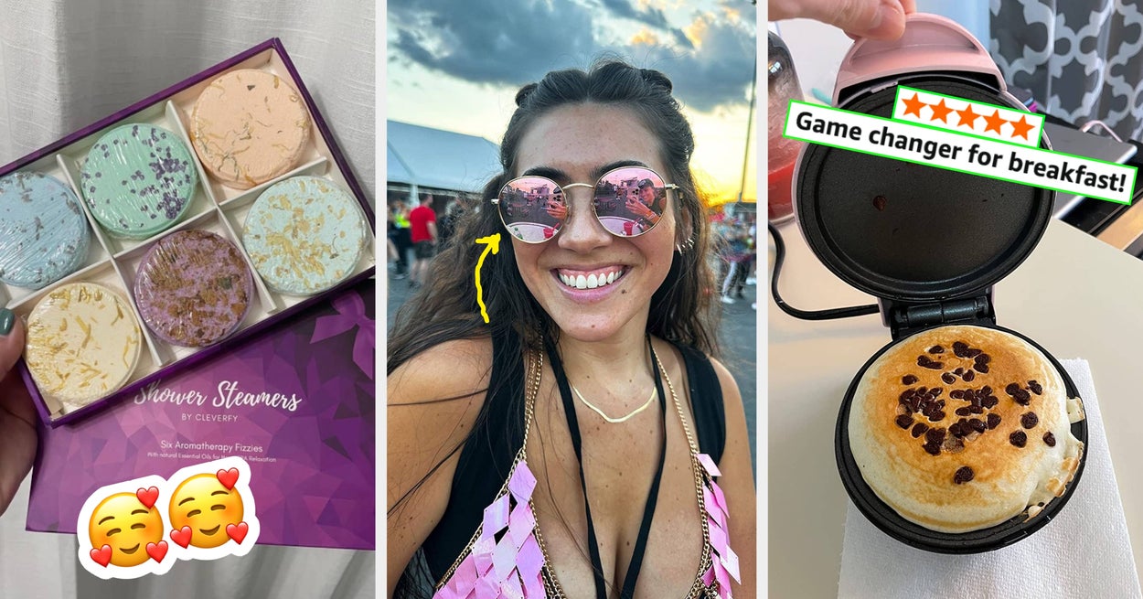 We hope you love our recommendations! While every product is independently chosen by our editors, BuzzFeed and our publishing partners may collect a share of sales or other compensation from the links on this page. You can read more about how our affiliate partnerships work in our Editorial Standards & Ethics Guide. Finding these memory foam slippers at less than $15 feels like stumbling upon a 5-star suite at a motel rate. Promising review: "For the money, you can’t beat 'em! These look amazing on my face, like a $300 pair of sunglasses. I have tried several pairs, and this brand looks and feels comparable to a pair of Ray-Bans and Pradas. I have a smaller face, and to me, this pair fits the best, perfect for my nose and brow line. I couldn’t be happier, just wish there were 6 stars so everyone would know how amazing they are. If you are questioning whether or not they will look as good on you as they do in the photos, yes... Yes, they do." —Christina Get them from Amazon for $19.99 (available in six colors). Promising review: "First, let me say, I LOVE THIS RING!!!! I wear it all the time. I've been wearing it for over a month now, and in the beginning, I tried to take it off when doing dishes, showering, and washing my hands. After about two weeks, I just decided to leave it on, and it has been fine. I never take it off; the ring is true to size. It's not too thin or thick, feels great on, and it is durable. The only con is that the stones can sometimes look cloudy. Other than that, I love it, couldn't be happier, it's great for the price, and I am very pleased." —tracy k revels Get it from Amazon for $17.47+ (available in ring sizes 5–10 and in four colors). Promising review: "This bag is awesome! It’s exactly like the Lululemon ones but so much cheaper. The quality is great, I’ve had it for over a year now, and it still looks like new! The strap is great since it’s adjustable (but I usually wear it as a crossbody), and the color has not faded at all. I highly recommend this if you’re looking for a Lulu alternative or just a cute, versatile bag. I love it and use it all the time. It fits so much stuff!" —KL19 Get it from Amazon for $9.98+ (available in 34 colors). Promising review: "These slippers are amazing! Discovered them on TikTok and went back and forth about ordering them, but wow, they are so comfortable. I have barely taken them off since receiving them. They are so fluffy and stay on my feet surprisingly well when walking around the house. Can’t wait until more colors are in stock to get another pair." —MSumm Get it from Amazon for $14.24+ (available in women's sizes 5–10 and 15 colors/patterns). Promising review: "I wanted to give this product 10 stars but was only limited to 5. :( This stuff is AMAZING!!!! I'm almost 30, and my face has become super oily — like I can fry chicken on it by the end of the day. For months, I've been neglecting to wear any kind of foundation or makeup. After reading the reviews, I decided to give this a try. The glow it gives you is AWESOME!!! It makes my skin so soft. I'm probably going to wear just this and no foundation 50% of the time. After the Texas heat...and the sun...and amounts of sweat...my face was PERFECT...STILL! No oil... No smears... No pores... This is literally sent from heaven!!!! My ONLY dislike is the fact that you can't purchase this in 5-gallon buckets!" —Jessica Get it from Amazon for $14.99 (also available in a redness-correcting formula). Promising review: "The design is awesome for fitting different shapes of makeup stuff. I’m not a heavy makeup wearer but still have a good amount of stuff lol. Everything I need fits in there perfectly. I absolutely love it! 100% recommended!!!!!" —Paul C. Fleck Get it from Amazon for $18.99+ (available in two sizes and 26 colors/patterns). Each kit comes with six shower steamers, including lavender, menthol with eucalyptus, vanilla, watermelon, and grapefruit, and peppermint, with explanations for each scent's intended use. Read more about aromatherapy and stress and tension at Johns Hopkins. Cleverfy is a small business that makes cool beauty and aromatherapy products. Promising review: "I truly enjoyed these shower steamers. They smell divine, and not only that, but they each come with a personalized affirmation, and they describe what each one is intended for. I love the personalized letter from the creator, Helen. I will order again, and I will be telling my family and friends to order this as well. I started feeling much calmer after just smelling them." —Amazon Customer Get a pack of six from Amazon for $9.99 (also available in a larger pack size in various scents). Promising review: "I love these bulbs. They make any room all warm and cozy. Also, a fantastic night-light for the little ones. :) Get you some!" —Amazon Customer Get it from Amazon for $16.99+ (available in seven styles). Promising review: "Love these glasses! So cute and the colors are perfect!" —Jaime Get a set of four glasses from Ikea for $24.99. Check out a TikTok of the carafe set in action. And if you want a more fancy lookin' carafe, look no further! Promising review: "I saw this carafe in a BuzzFeed article. This is definitely something I needed that I didn’t know that I needed. I live in a two-story house with the kitchen on the opposite end, which makes me groggily navigate the stairs at night. I usually have a water bottle on my nightstand, but I decided I could upgrade. This carafe is a little smaller than I’d like, but for the price, it’s really perfect and no-frills. It’s simple but functional. I guess you could use this for mouthwash, too, but it’s perfect for bedside water. I love that the cup covers the top when not in use so that the water stays clean. I would not hesitate to purchase this item again." —JadeMermaid Kitsch is an LA-based, self-financed, woman-owned business established in 2010 that specializes in hair accessories. Check out a Ti