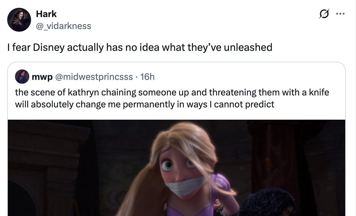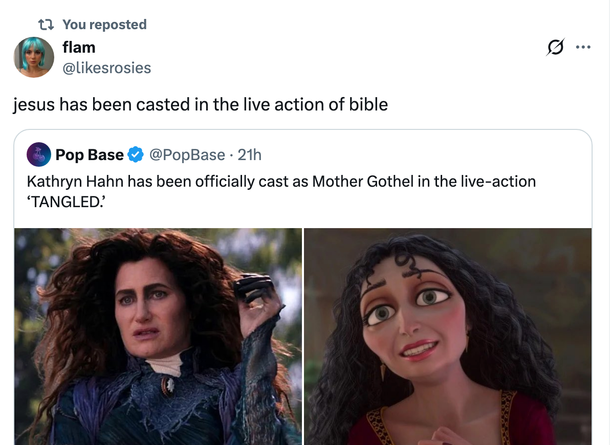 This week in TV and movie news, "Virgin River" returns with Season 7, the two Oscar-nominated movies you should watch before the awards on Sunday, the best reactions to Kathryn Hahn as Mother Gothel, and more. As a Senior Talent Booker and Producer at BuzzFeed, you can typically catch me flailing about the buzziest TV shows and movies. If there is one show I would classify as my “guilty pleasure,” it would be Virgin River. I unapologetically love this show so much, so I am super excited it’s back this week. With its seventh season, Virgin River picks up after Mel (Alexandra Breckenridge) and Jack’s (Martin Henderson) wedding, and it sounds like newlywed life will take a quick turn toward potential parenthood when they get the news that they might be able to adopt. Elsewhere in Virgin River, Doc (Tim Matheson) is dealing with the fallout of a medical investigation, Lizzie (Sarah Dugdale) adjusts to life as a new mom, and Brie (Zibby Allen) finds herself stuck between Brady (Ben Hollingsworth) and Mike (Marco Grazzini). Once again, this season is a whole lot of heart, some wild plot twists, and just more amazing chemistry from this cast, especially Breckenridge and Henderson. Again, if there’s one thing I’ll always fall for, it’s the “doctor moves to a small town and falls in love " trope (see: Everwood and Hart of Dixie). Based on Colleen Hoover’s bestselling book of the same name, Reminders of Him follows Kenna (Maika Monroe), who has just returned to her former town after getting out of prison for a car crash that killed her boyfriend Scotty (Rudy Pankow). Determined to get her life together in hopes of seeing their 5-year-old daughter, Kenna crosses paths with Ledger (Tyriq Withers), Scotty’s best friend. Now, as Kenna and Ledger begin to fall for each other, will their budding romance be enough to prove to Scotty’s parents (Lauren Graham and Bradley Whitford) that Kenna deserves to be in her daughter’s life? I’ve honestly really missed the Nicholas Sparks movie era of the 2000s, and that’s what this movie harkens back to. It’s funny, it’s got a lot of heart, and Monroe and Withers have the perfect chemistry. It’s a perfect movie to go to with a bunch of your friends. Book clubs filled with moms everywhere should be attending, too. Like the success of The Housemaid, never underestimate the power of women to turn something into a box-office hit. If any show was worth the three-year wait between seasons, it’s One Piece. The show returns with its long-awaited second season that is bigger, bolder, and more adventurous than the first. The show continues to expand on the world originally laid out in the beloved anime series in the best possible way. In One Piece Season 2, Luffy (Iñaki Godoy) and the Straw Hats set sail for the extraordinary Grand Line, a legendary stretch of sea where danger and wonder lurk around every corner. As they journey through this unpredictable realm in search of a great treasure, they encounter bizarre islands and several formidable new enemies. There are a ton of new characters and cast members that help make this season memorable, namely Bridgerton star Charithra Chandran as Nefertari Vivi and the introduction of Tony Tony Chopper, who is voiced by Mikaela Hoover. And, don’t worry, I’ve built my TikTok FYP brick by brick, and I am already getting Nami (Emily Rudd) and Nefertari edits. Since the Oscars are this Sunday, it only felt right to highlight two of the biggest contenders at this year’s awards show. So, first up is Sinners. Now, if you haven’t seen this movie yet, what are you waiting for? If you already have, I highly recommend a rewatch now that it’s streaming. Directed and written by Ryan Coogler, Sinners is set in the Mississippi Delta in 1932 and follows identical twins Smoke and Stack (Michael B. Jordan), who return to their hometown to open up a juke joint. However, the opening night of their new place quickly turns horrific when they are confronted with a supernatural evil waiting to be let inside. The film is one of the greatest movies I’ve seen in the past decade. Its attention to detail still amazes me. Sinners is up for a record-breaking 16 nominations at this year’s Academy Awards, and it’s looking like it’ll win big. I’m personally pulling for Sinners to take home Best Picture, Michael B. Jordan to win Best Actor, and I would love Wunmi Mosaku and Delroy Lindo to walk away with Best Supporting Actress and Actor, too. While all of the potential winners still feel up in the air only a few days before the big day, I do think Coogler is locked to win Best Original Screenplay. The second Oscar-nominated movie I’d recommend watching before this year’s awards is One Battle After Another. Directed and written by Paul Thomas Anderson, the film follows Pat Calhoun (Leonardo DiCaprio), a former member of a revolutionary group known as the French 75. Sixteen years later, living under the name Bob Ferguson, Calhoun is forced back into his old life after his daughter (Chase Infiniti) is taken by a corrupt military officer (Sean Penn). The cast and performances in this one are something I am still thinking about all of these months later, and I am still heartbroken that Infiniti didn’t manage to get nominated for an Oscar for her scene-stealing work in this one. Nominated for 13 Oscars, One Battle After Another is definitely the biggest competition for Sinners, hence why I think you should watch this film before Sunday’s awards. As I mentioned above, the winners could go either way in so many categories, so One Battle After Another could pull out a Best Picture win. It’s an exciting awards season with so many unknowns, but I do hope PTA wins at least Best Adapted Screenplay. That man deserves to be known as “Academy Award winner Paul Thomas Anderson.” These are some of my favorite things from my FYP, feed, and more: Also, have a question for me? Send it to me now at screentime@buzzfeed.c