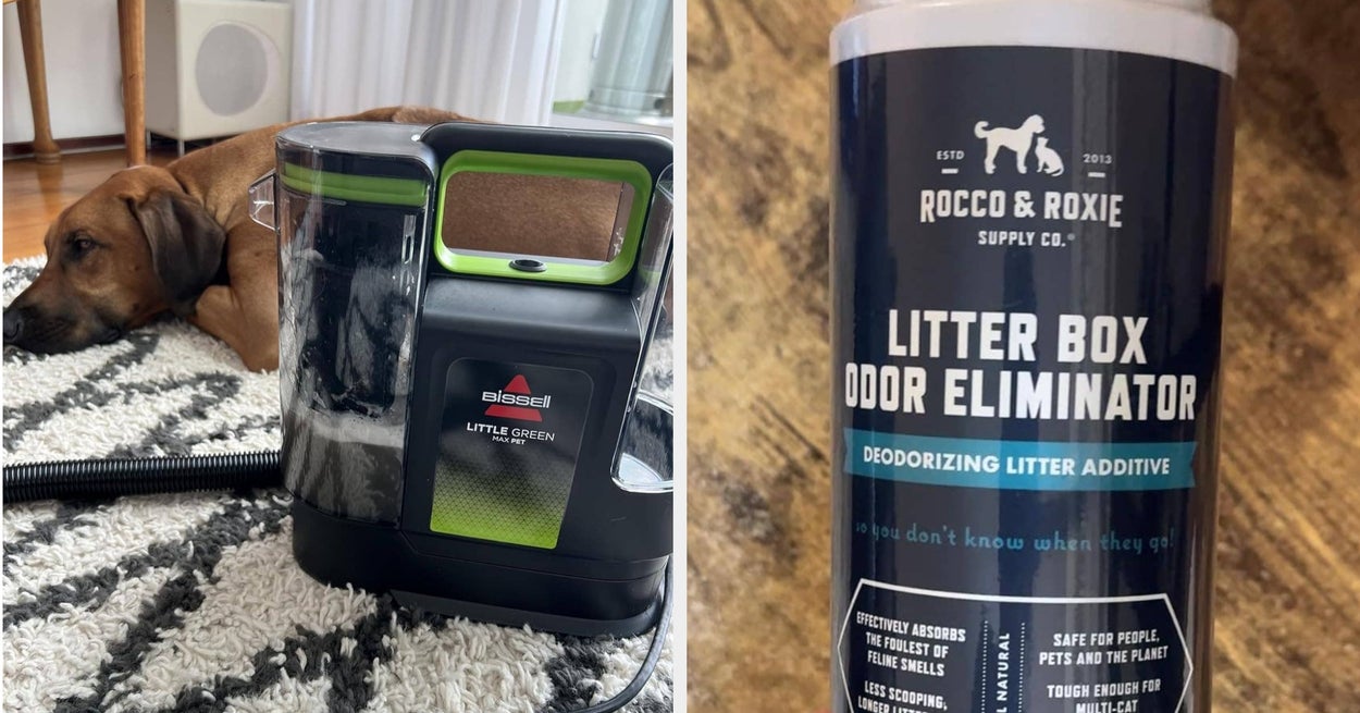 We hope you love our recommendations! While every product is independently chosen by our editors, BuzzFeed and our publishing partners may collect a share of sales or other compensation from the links on this page. You can read more about how our affiliate partnerships work in our Editorial Standards & Ethics Guide. Because loving your pet should not mean your home smells like a mystery you are afraid to solve. Promising review: "I live in an apartment complex, and I don't have a detachable shower head. My husky and my shepherd definitely needed one, so I can bathe them at home. This thing is amazing; it just pops on, and no tools are required. It is the best thing I have bought hands down. My dogs love it too." —Kaiza Get it from Chewy for $29.99 (originally $39.99). Use it with the Pet Pro Oxy formula to protect against future stains, too! Promising review: "I give 5 stars. This thing saved me during a not-so-fun dog emergency. My dog had an upset stomach, and this cleaned it up way better (and faster) than paper towels ever could. Strong suction, easy to use, and actually works on gross, real-life messes. My only regret is not ordering it sooner; I could’ve avoided a lot of gagging. If you have pets, this is a must." —Jennifer M Get it from Amazon for $119.97+ (also available in five other styles). Promising review: "With three cats and two dogs, it’s almost impossible to keep my hardwood floors and carpets clean. My three-step process of sweeping, then vacuuming, then mopping has been condensed into just one step with this thing. I can clean all my floors in just 15 minutes instead of 45!! My hardwood floors look beautiful, and my carpets have never had less fur and dirt! It also effortlessly cleaned up dog throw-up from my rug. The self-cleaning mechanism for the roller is incredible, too! I’m seriously over the moon about this thing." —:) Get it from Amazon for $169.99 (also available in two other styles). Promising review: "Smells amazing! Truly seems to eliminate pet odor, not just sit on top of it. Makes the house smell fresh and clean. Very large bottle for the price." —Devon Lang Get it from Amazon for $14.99+ (available in three scents and in a two-pack). Promising review: "My Doberman had thrown up on my 100% wool rug about two months ago. I shampooed and washed the spot by hand every week for three weeks. I could still smell the sourness from the vomit. I could not get that smell out of my rug even after all that scrubbing. I was at my wits' end and thought I would have to throw my rug out! I bought this to try, sprayed it all over the area, and vacuumed. I knew immediately that the smell was gone! AMAZING! Anyone that owns pets needs a bottle of this in their house. I will never buy anything else now!" —KoCo Get it from Amazon for $17.96+ (available in two sizes and two scents). One Fur All is a small biz that specializes in home fragrances for pet owners. And check out our Pet House Candle review for more deetz! Promising review: "Oh my gosh, these things are wonderful!!! With two large dogs in the home, I feel like I'm fighting a constant battle against funky dog smell. Light these up, and rest assured, the smell is vanquished. Even better, it helps quickly battle the unfortunate smells that occur when our older dog has accidents in the home. I feel so much more confident having guests in the home, not worrying that my house smells like 'dog.' The con is the price — yes, these are way more expensive than some other candles. However, you definitely get your money's worth. I burn them pretty frequently for a few hours at a time, and they're still going after two months!" —Smith Get it from Amazon for $23.99 (available in 32 scents and in two-packs). Promising review: "We picked this up after our two Frenchies had a bath at the vet and smelled so good for so long! It’s a clean smell, not overbearing. Their fur stays super soft, too! Highly recommend." —Amazonia Get it from Amazon for $16.99+ (available in two sizes). Promising review: "I have used this product for years — puppies, adult dogs, senior dogs, healthy and ailing, and I would not be without it. Accidents happen, and when they do, this product removes the evidence — no smell, no stain." —Connie Get it from Chewy for $13.57+ (originally $15.99+, available in two sizes). Promising review: "This does more than control smell. It absorbs moisture really well, which helps prevent urine from pooling or leaking to the bottom of the box. The litter stays drier, cleaner, and easier to scoop, and the box itself doesn’t get that gross buildup as fast. It blends right into the litter without making a mess or leaving residue, so overall cleanliness is noticeably better. The bottle capacity is generous, and since you only need a small amount each time, it lasts a long while. Because of that, the value for money is great. One bottle goes much further than expected. If you want better moisture control, less odor, and a cleaner litter box without constantly replacing litter, this is absolutely worth it." —Jamie Promising review: "OMG this is disgusting!!! I hope this isn't all just cat pee that shows up cause there is a lot! I bought this because I thought my cat was peeing in one room and couldn't find the exact spot, so I bought this. Found the spot and more. Would recommend." —Momof3boys Promising review: "Bought these for when my long-haired Dachshund puppy lies down in the dirt on walks or has a little poop left on her butt. They've been great for when she's just a little dirty but doesn't need a full wash down in the bath. They are virtually unscented, very soft, and have been moist enough to get the job done while not being dripping wet. Great product!" —Katelyn S. Get a 100-pack for $9.99 (available in three scents, unscented, and in other multipacks). Promising review: "Initially, I bought this because I’m potty training a puppy, and it’s not going great. This product really worked
